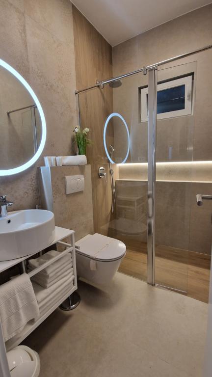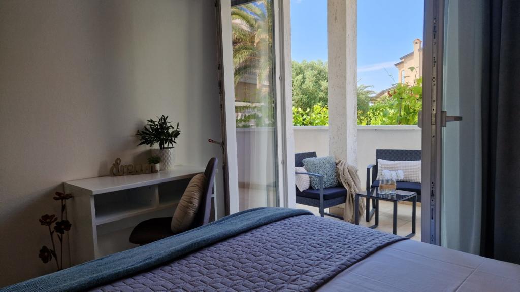 Piękna lokalizacja z klimatyzowanym apartamentem i ogromnym tarasem z widokiem na morze. Mieszkanie ma wszystko. W pełni wyposażona kuchnia ze wszystkim, czego potrzebowaliśmy. W sypialni najwygodniejsze łóżko, łazienka przestronna i ładnie urządzona. Byliśmy bardzo zadowoleni z czystości, ponieważ wszystko jest naprawdę czyste. Nie mogłam się doczekać porannej kawy na tarasie z widokiem na morze i piękny zielony ogród, a dzieci zawsze chciały jeść tylko na tarasie, bo im było miło. Gospodarze są niezwykle przyjaźni i pomocni. Spędziliśmy urlop bardzo dobrze, bo naprawdę wypoczęliśmy w tak doskonałej lokalizacji. Pochwała!