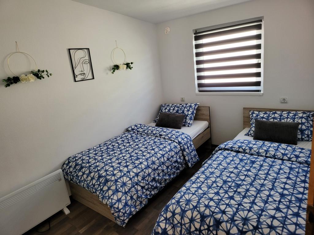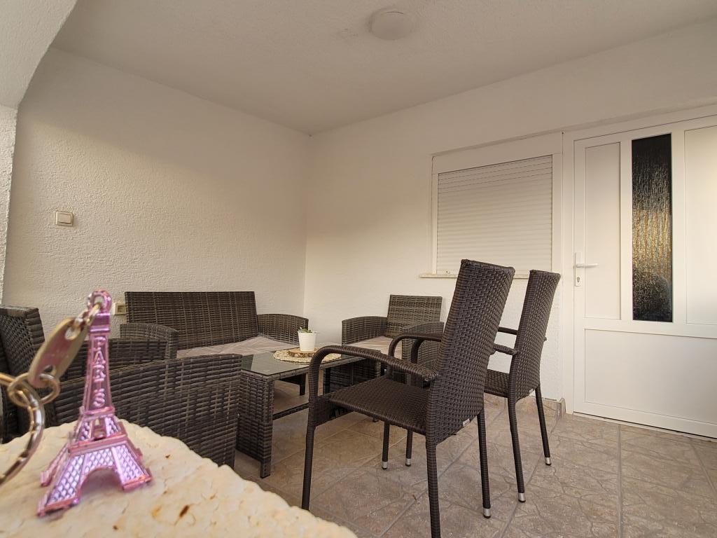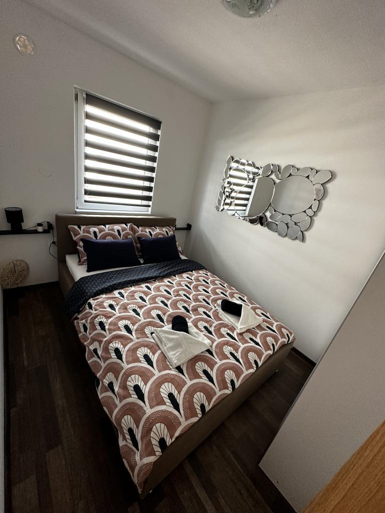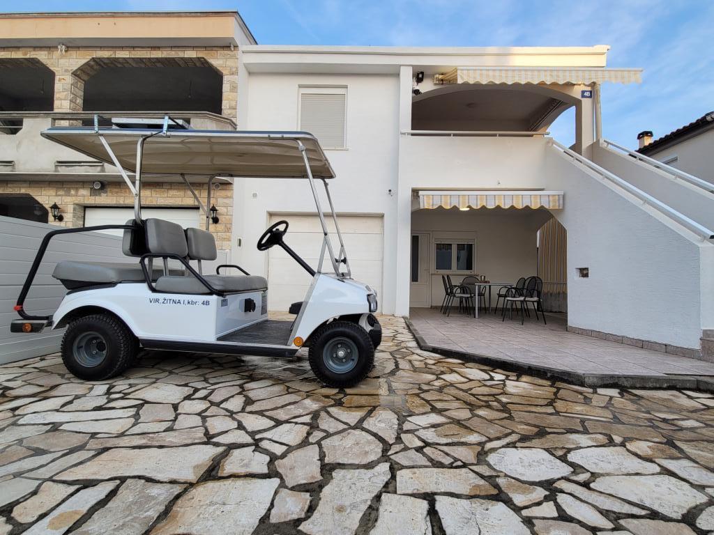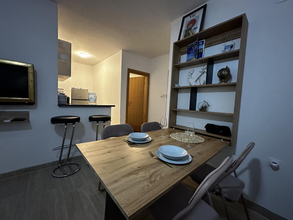 Mieszkanie do wynajęcia dla 4+2 osób na wyspie Vir, Žitna I., w ślepej i cichej uliczce, parking przewidziany na 3 samochody, podwórko, taras, grill, odległość od plaży i centrum Vir 750 metrów , 8 minut spacerem lub 2 minuty jazdy Do apartamentu dołączony jest "Clubcar" dla 4 osób za dodatkową opłatą w wysokości 15 euro za dzień, istnieje możliwość wypożyczenia motoroweru elektrycznego za 15 euro za dzień. Mieszkanie składa się z dwóch sypialni, łazienki z toaletą, kuchni oraz pokoju dziennego z jadalnią, w salonie znajduje się rozkładana sofa. Klimatyzacja, Wi-Fi, TV, mikrofalówka, kostkarka do lodu, suszarka do włosów, żelazko.