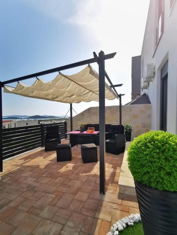 Apartament Alex znajduje się na atrakcyjnym nowym osiedlu w Vodicach.Budynek, w którym się znajduje, został wybudowany w latach 2022/2023. Mieszkanie z pięknym widokiem na morze i wyspy, z dużym podwórkiem, na którym znajdują się jacuzzi i leżaki. Apartament Alex udostępnia swoim gościom 2 rowery.