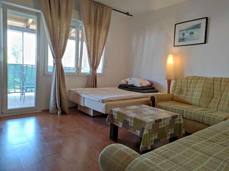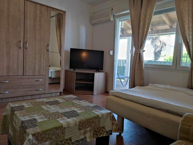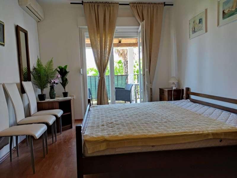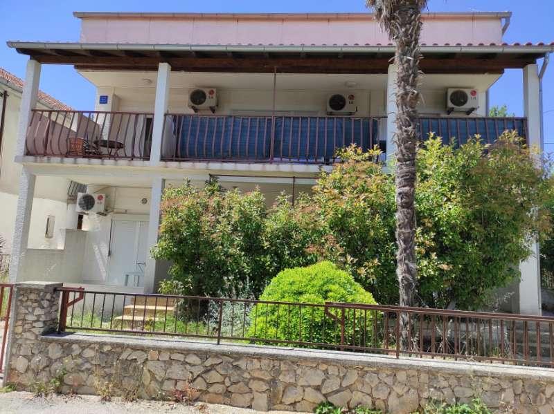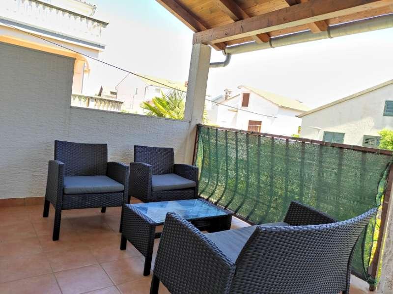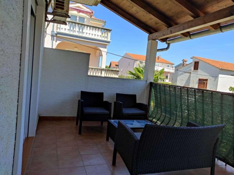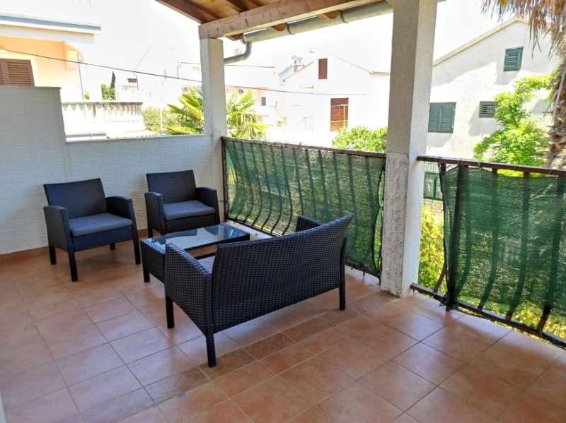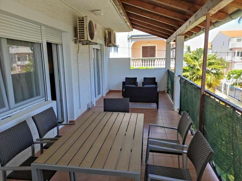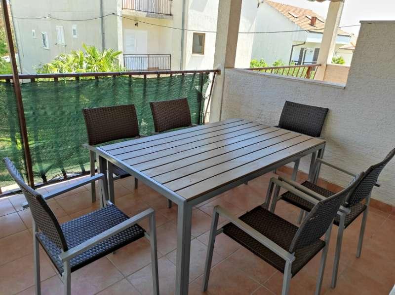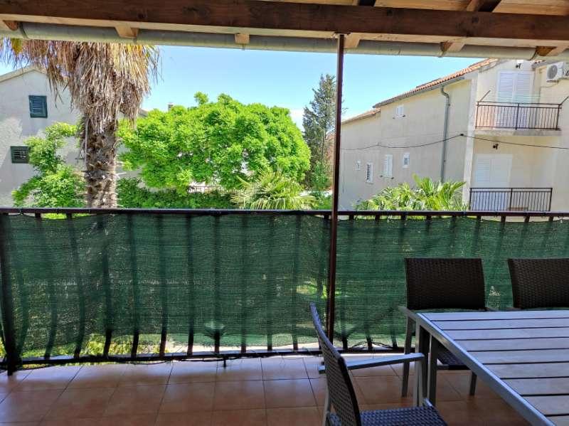 Mieszkanie znajduje się przy cichej ulicy z zadaszonym tarasem, wyposażone w 2 oddzielne łazienki, 2 prysznice i 2 toalety, kuchnię, klimatyzację, TV, wi-fi, pralkę i salon na tarasie. Na podwórku znajduje się miejsce parkingowe i grill. Mieszkanie znajduje się w pobliżu hotelu Olympia Sky, sklepów, plaż i piekarni. Adres to 16A od Splitu