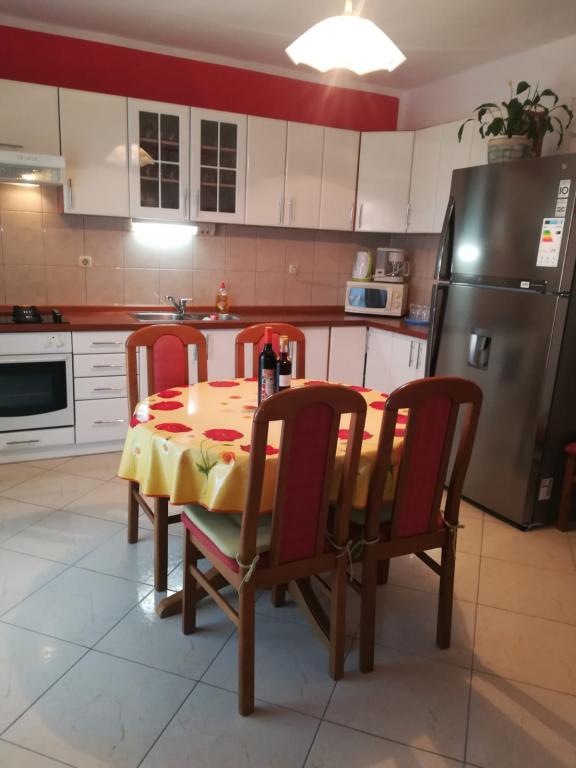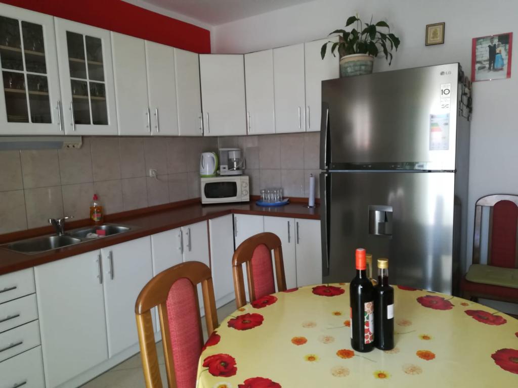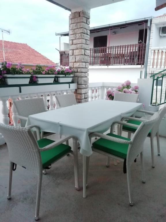 Wygodny i nowoczesny apartament 110 m2, idealny dla jednego lub dwóch małych dużych rodzin, którzy chcą wakacje razem. Znajduje się on w centrum miasta, na pierwszym piętrze domu. Składa się z trzech sypialni z dwoma podwójnymi łóżkami, jeden z dostawką, dwie łazienki (jedna z prysznicem i jedna z wanną), przedpokój, przestronna kuchnia, jadalnia, pokój dzienny i duży i piękny taras. W centrum miasta na piechotę zajmie Ci kilka minut. Posiada również parking dla dwóch samochodów oraz możliwości wykorzystania grilla na podwórku. Uwaga: korzystanie z klimatyzacji nie jest wliczone w cenę i okres od 16. 07. -20. 8. pożądane zmiany w soboty.