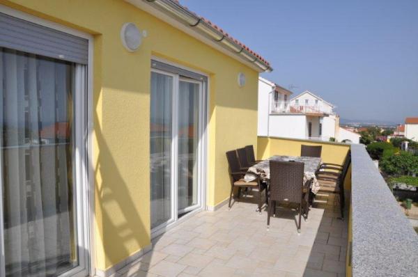 Luksusowo urządzone (nowy 2012) mieszkanie w spokojnej części miasta znajduje się 400 metrów od słynnej plaży niebieską flagą i 400m od centrum miasta, w pozycji (5-7 minut spacerem). Mieszkanie znajduje się na drugim piętrze, a teren jest 130m2 i posiada widok na morze i wyspy. Ma trzy sypialnie, pokój dzienny, kuchnia i dwie łazienki. Wszystkie sypialnie, pokój dzienny i kuchnia są w klimatyzację. Mieszkanie ma trzy balkony, a wszystkie mają widok na morze. Apartament wyposażony jest w telewizor LCD, telewizję satelitarną, DVD, internet, pralka, zmywarka, mikrofalówka, ekspres do kawy, czajnik, toster, mikser, łóżeczka, żelazko i deskę do prasowania, suszarkę do włosów, sejf ...