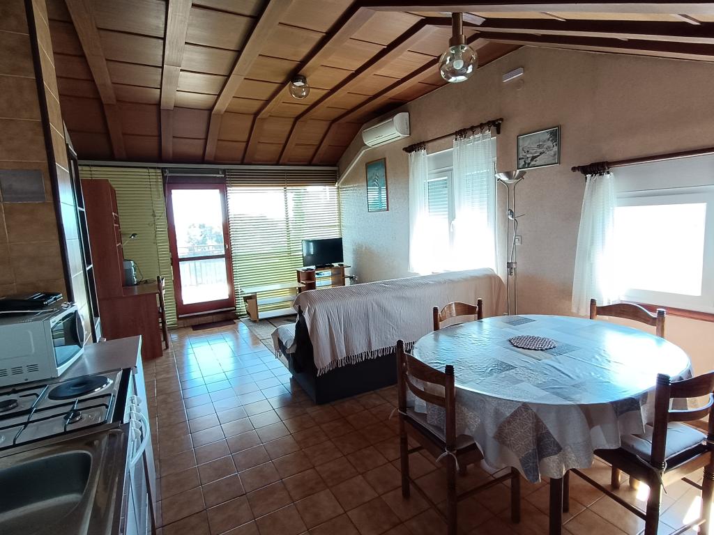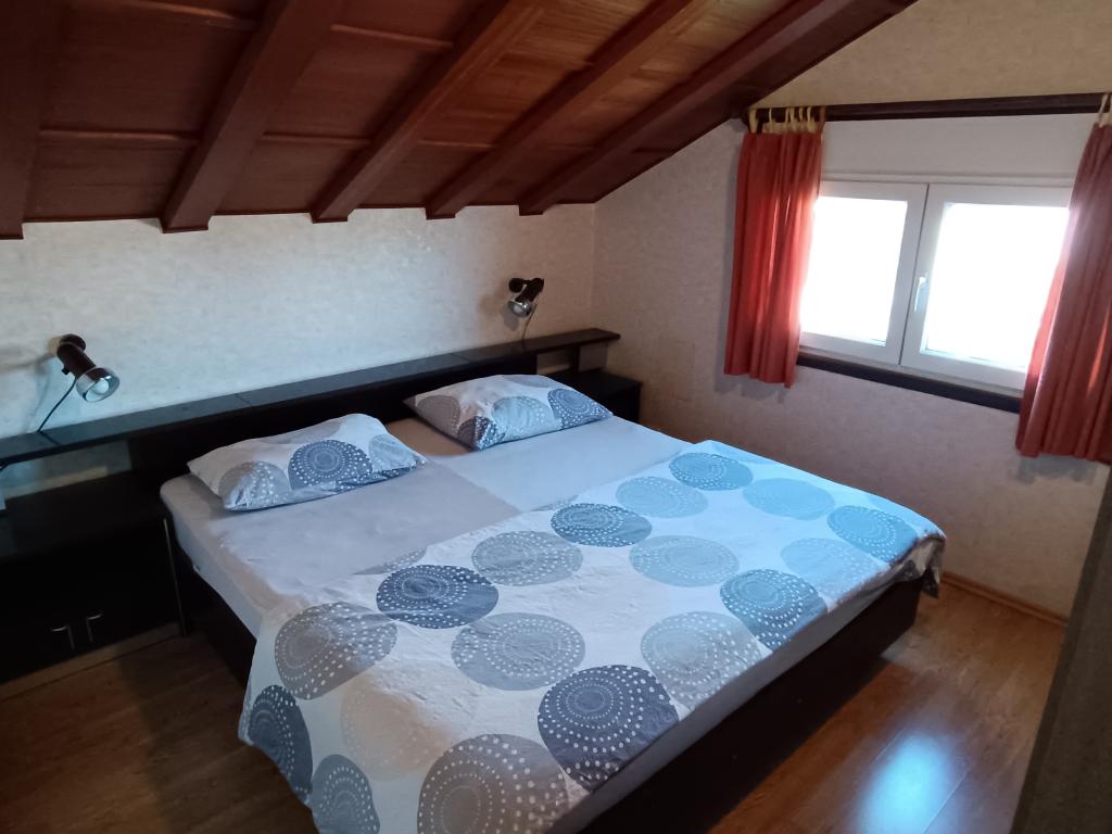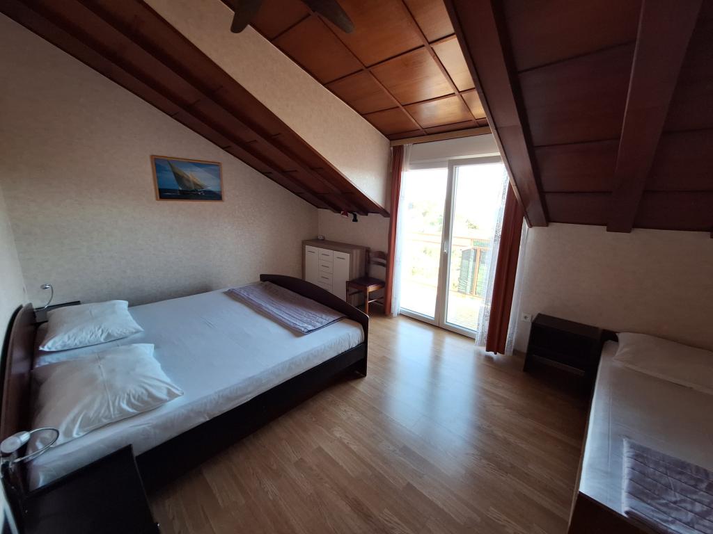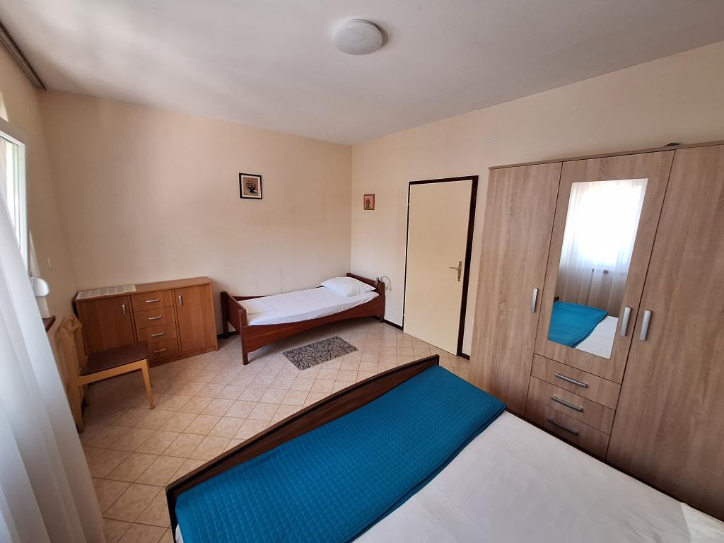 Dom położony jest w spokojnej dzielnicy Vodice i otoczony zielenią. Plaża oddalona jest o około 90 m, a do centrum Vodic zajmuje około 10 minut przyjemnego spaceru. Darmowe wifi. CENA ZAWIERA PODATEK MIESZKANIOWY I KLIMATYZACJĘ. ------------- Apartament 1 - 4 osobowy - 85m2, 2 sypialnie, pokój dzienny, kuchnia, łazienka oraz balkon z pięknym widokiem na archipelag. KLIMATYZACJA, CYFROWA TV SAT ------------ Apartament 2 - dla 3 osób - 40m2, jedna sypialnia, kuchnia, łazienka, taras. KLIMATYZACJA, CYFROWA TV SAT------------ Apartament 3 - dla 3 osób - 45m2 (drugie dziecko gratis), jedna sypialnia, kuchnia, łazienka, taras. KLIMATYZACJA, CYFROWA TV SAT-GRILL