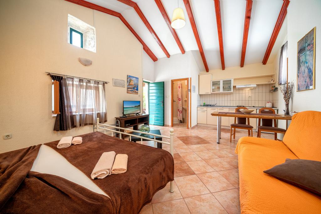 Mieszkania Janjac są w samym sercu miasta, w odległości 200 metrów od promenady. Liczne bary, restauracje i plaże znajdują się w odległości spaceru. Wszystkie apartamenty obejmują kuchnię, jadalnię, pokój dzienny i łazienkę z prysznicem i są wyposażone w klimatyzację i bezprzewodowy dostęp do Internetu. Mieszkania jagnięcina oferują wspólny ogród ze sprzętem do grillowania. Rynek jest 200 metrów. Na podwórku jest miejsce parkingowe. Główny dworzec autobusowy znajduje się w odległości 250 metrów. Lotnisko w Splicie wynosi 70 km. To jest moja ulubiona część miejscowości Vodice dla naszych gości, w oparciu o bezstronną przeglądu. Zapraszamy do wypoczynku w naszym apartamencie!