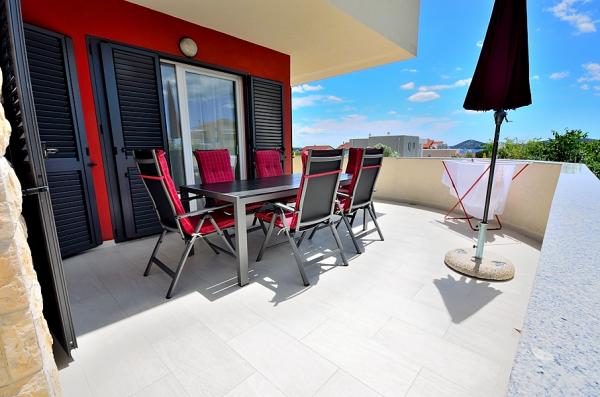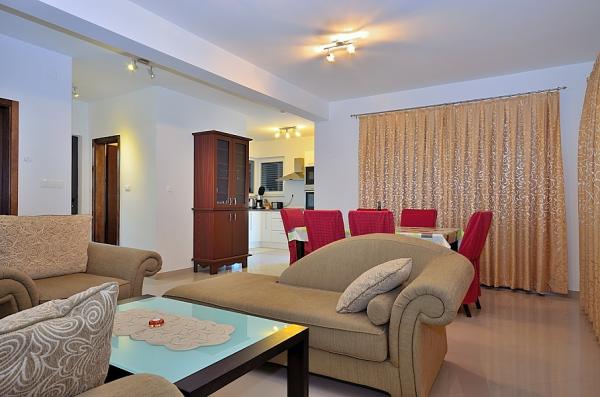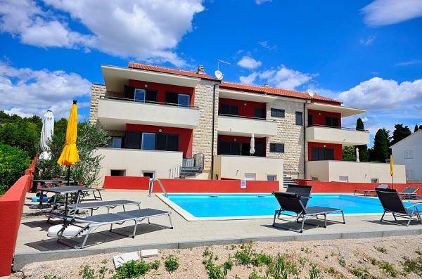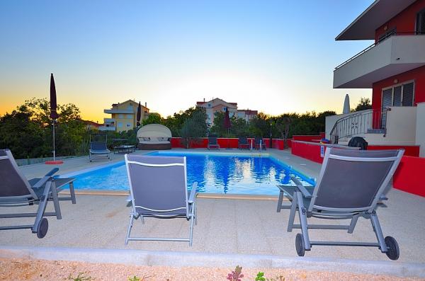 Vodice- nowo wybudowany dom z domu basen 6 2, 400 m od plaży, 500 m do Blue Beach (plaża z niebieską flagą) Dom składa się z parteru, gdzie toalety, kuchnia i pokój dzienny z dużym tarasem na pierwszym piętrze znajdują się trzy sypialnie, łazienka i taras. Na korzystanie z basenu, 2-3 miejsca parkingowe, grill, wi-fi, TV satelitarną,