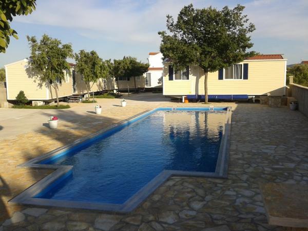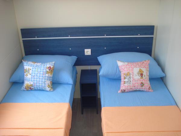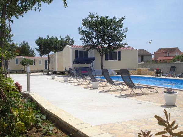 Nowo wybudowany kompleks ośmiu domki SHELBOX (każdy 24m2, dwie sypialnie, jedna z podwójnym łóżkiem, druga z dwoma pojedynczymi łóżkami oddzielonymi, telewizję satelitarną, klimatyzację, kuchnia i WC). Lokalizacja jest idealna na wakacje w ciszy, ponieważ nie jesteśmy w pobliżu głównej drogi, jest również idealnym miejscem dla rodzin z dziećmi, ponieważ nie ma ruchu i jest mnóstwo wolnego miejsca. Odległość od morza wynosi 300 m (3-5min pieszo), w tym roku został przebudowany plażę i oznaczone niebieskimi flagami (interaktywne ankiety: http://www.infovodice.com/pano/srima/Srima.html). Na każdej parkingu do domu. Za pobyt poniżej 3 dni cena jest o 20% wyższa cena. Podatki są pobierane oddzielnie, 1 € za osobę i dla dzieci do lat 18 € 0,50.