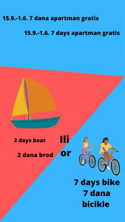 W pełni i nowocześnie wyposażone apartamenty w spokojnej dzielnicy Vodice, położonej 300 metrów od morza. Obiekt znajduje się 5 minut spacerem od Blue Beach i hotelu Punta oraz 15 minut od centrum Vodice. Na plaży znajduje się największy park wodny nad Adriatykiem, przeznaczony dla dzieci i dorosłych. Oferujemy wysokiej jakości zakwaterowanie w nowych, w pełni wyposażonych i nowoczesnych apartamentach. Mieszkanie na piętrze o powierzchni 48 m2 składa się z sypialni, łazienki z prysznicem, kuchni z jadalnią, pokoju dziennego z łóżkiem, dwóch tarasów z widokiem na morze, dwóch odbiorników LCD/SAT, klimatyzacji, bezpłatny internet WiFi oraz miejsce parkingowe. Większy apartament na parterze o powierzchni 70m2 składa się z dwóch sypialni, łazienki z prysznicem, kuchni, jadalni, pokoju dziennego z łóżkiem, dwóch dużych tarasów, trzech odbiorników LCD/SAT, klimatyzacji, darmowego internetu WiFi oraz dwóch miejsc parkingowych spacje.