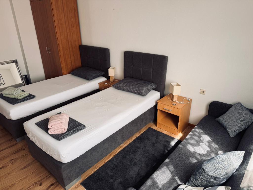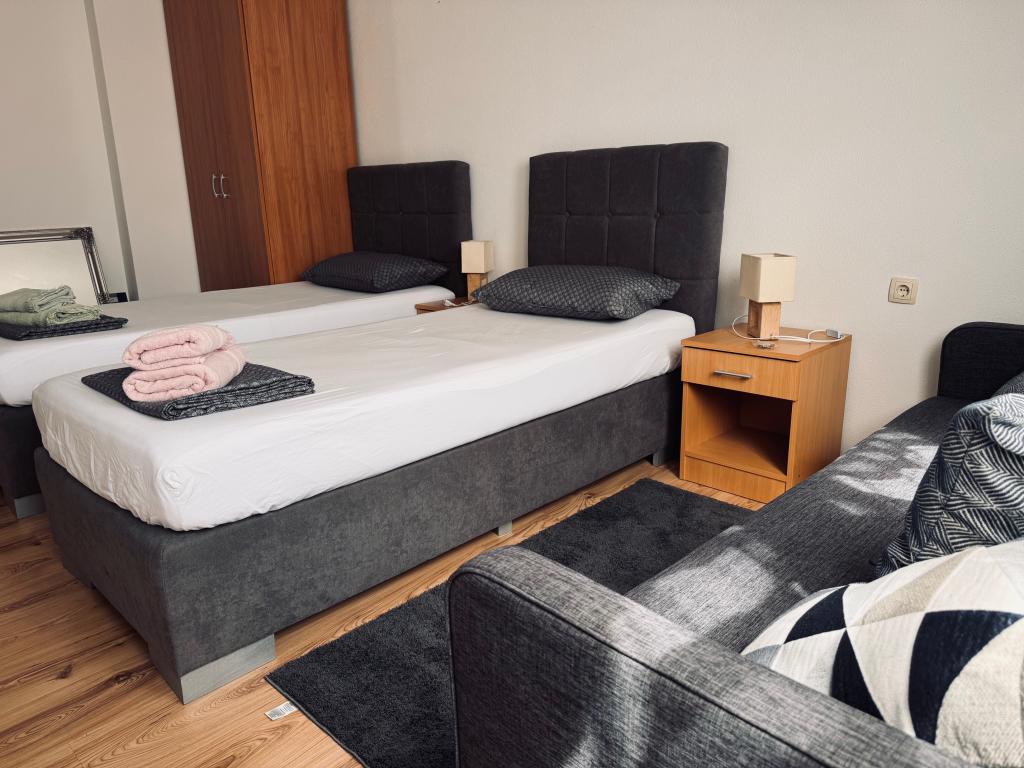 Mieszkanie blisko centrum Vodic, w pobliżu rynku miejskiego i dworca autobusowego, zaledwie kilka minut spacerem. Nowocześnie wyposażone w cichej okolicy. Do plaży spacerkiem spokojnym około 10 minut. Znajduje się pośrodku dwóch popularnych plaż, Blue Beach i Male Vrulje.