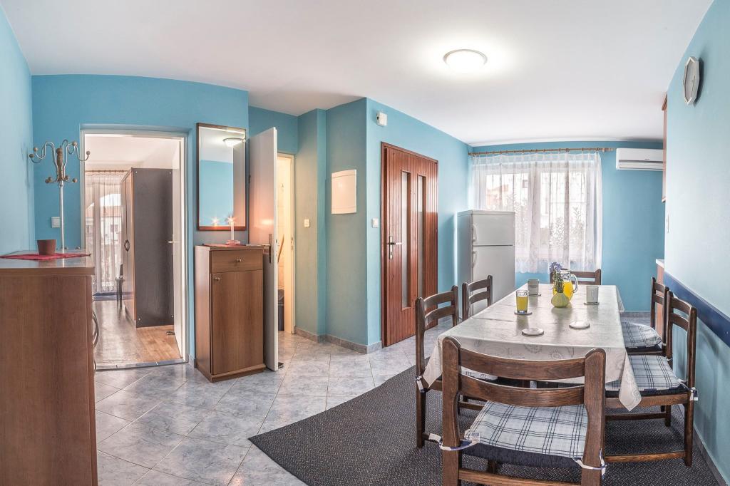 Nowoczesne, w pełni wyposażone apartamenty z trzema sypialniami o powierzchni 90 m2 z widokiem na morze, odpowiednie dla 4-6 osób. Duży zadaszony parking (4 samochody), grill i miejsce do grillowania z tarasem na dziedzińcu. Odległość od centrum miasta 500m, a do plaży 5-10 minut spacerem (400m.). W cenę wliczony jest Internet WI-FI, klimatyzacja, zadaszony parking i podatek turystyczny. Nasze apartamenty przeznaczone są przede wszystkim dla rodzin. Proszę wszystkie zainteresowane osoby o sprawdzenie „dostępności” i „cennika” przed wysłaniem zapytania! Rezerwacje telefoniczne nie są możliwe - dziękujemy.