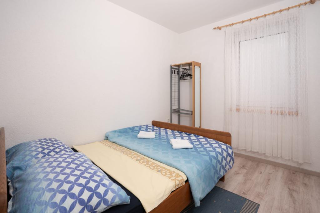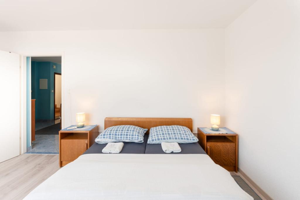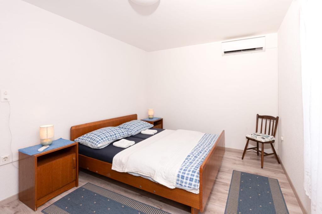 W pełni wyposażone apartamenty z trzema sypialniami o powierzchni 90 m² z widokiem na morze są odpowiednie dla 4–6 osób. Do dyspozycji gości jest duży, zadaszony parking na maksymalnie 4 samochody, a także grill i rożen na tarasie na dziedzińcu. Apartamenty znajdują się 500 m od centrum miasta, a do plaży można dojść w 5–10 minut (ok. 400 m). Cena apartamentów obejmuje internet Wi-Fi, klimatyzację, zadaszony parking, możliwość korzystania z grilla oraz opłatę klimatyczną. Apartamenty przeznaczone są przede wszystkim dla rodzin. Prosimy wszystkich zainteresowanych o sprawdzenie sekcji „Dostępność” i „Cennik” przed wysłaniem zapytania. Rezerwacja telefoniczna nie jest możliwa. Dziękujemy za zrozumienie.