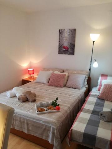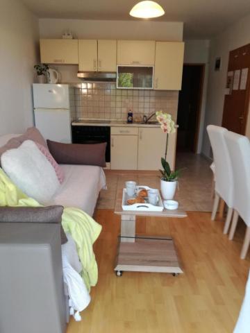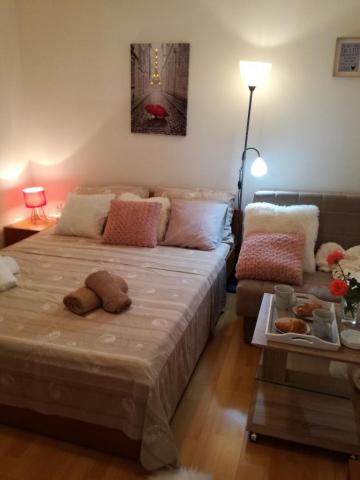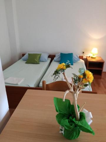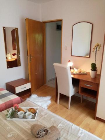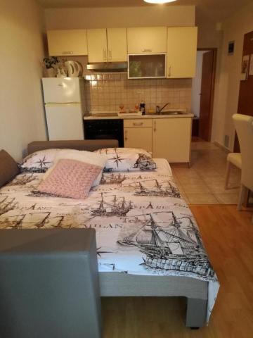 Drodzy goście! W rodzinnym domu na wysokim parterze wynajmujemy 1 apartament z jedną sypialnią i 1 apartament typu studio. Apartament z jedną sypialnią dla 5 osób. W sypialni znajduje się podwójne łóżko i dodatkowe łóżko (fotel 80x190). W salonie znajduje się trzyosobowa rozkładana sofa (łóżko 160x200). Apartament typu studio może pomieścić 3 osoby lub 4 osoby, jeśli są 2 dzieci. Ma łóżko dla 2 osób i łóżko z baldachimem 140x200. Apartamenty są klimatyzowane, posiadają telewizor, Wi-Fi, grill i bezpłatny parking przed domem. Studio ma również pralkę. Przed jednym i drugim mieszkaniem znajduje się przestronny zadaszony taras odpowiedni do spotkań towarzyskich z przyjaciółmi. Na parterze domu znajduje się rynek zaopatrzony w podstawowe produkty spożywcze i inne artykuły pierwszej potrzeby. Niebieska plaża z piaszczystą i żwirową plażą i wszystko, co jest potrzebne do przyjemnego wypoczynku (restauracje, kawiarnie, aquapark i inne udogodnienia) znajduje się 400 m od hotelu, a tak daleko od pierwszych kawiarni i restauracji w centrum miasta. Opłata klimatyczna, Wi-Fi, klimatyzacja, parking wliczony w cenę.