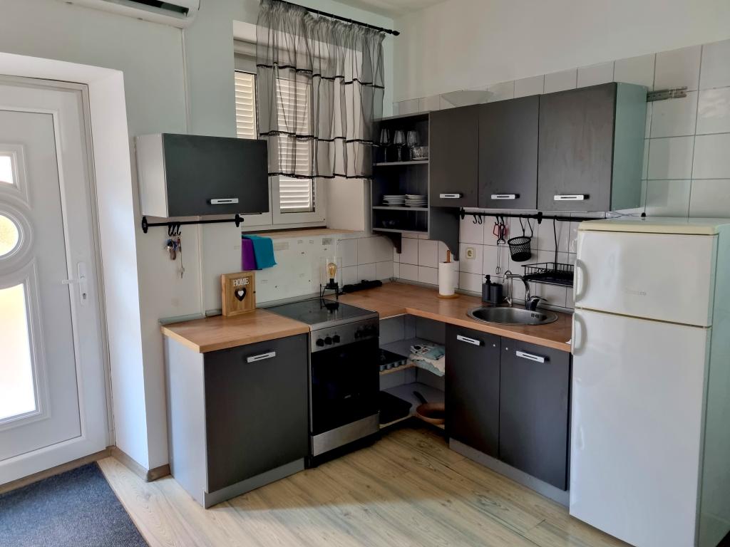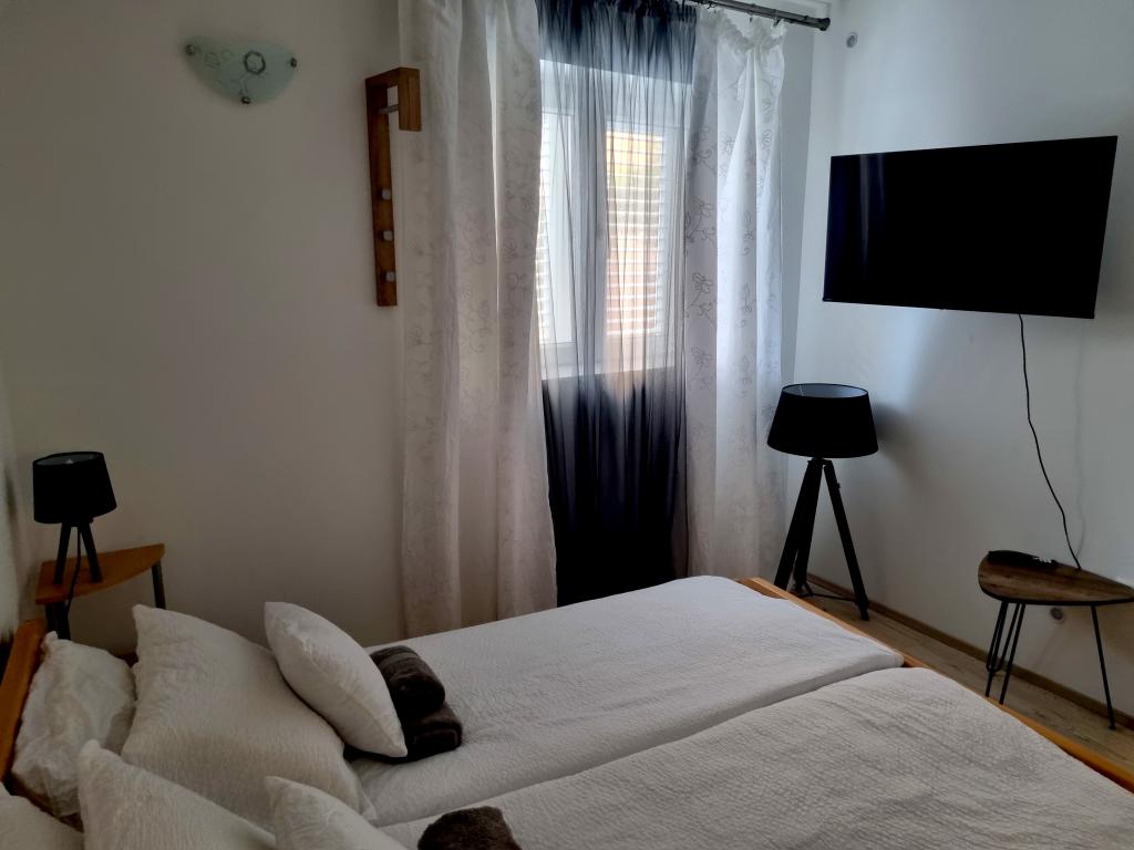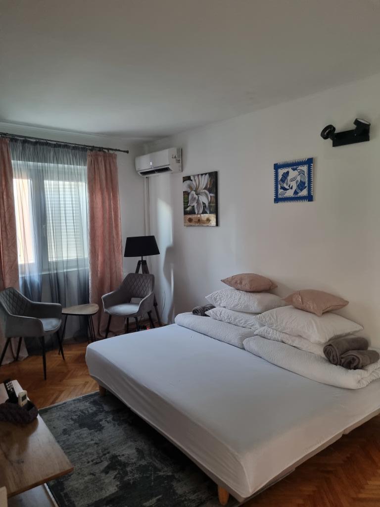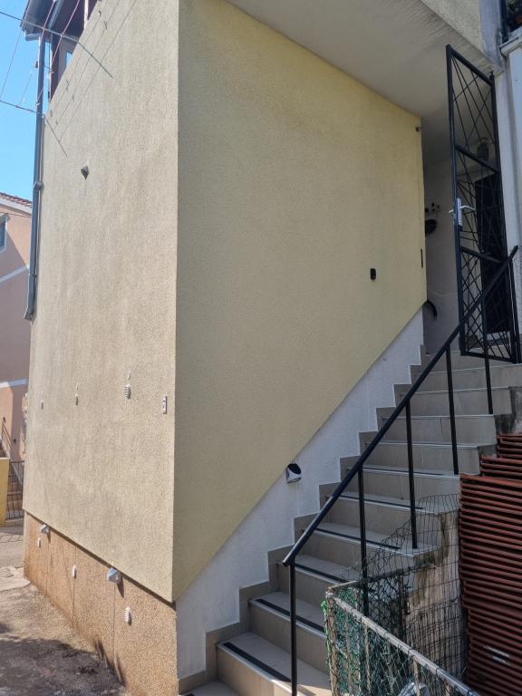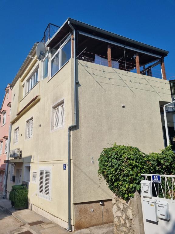 Dom z apartamentami położony jest w centrum Vodic, przy małej bocznej uliczce. Goście obu apartamentów mają do dyspozycji zadaszony taras z muralem i miejscem do odpoczynku i spotkań towarzyskich, a także taras na dachu z grillem, leżakami i widokiem na morze i miasto.