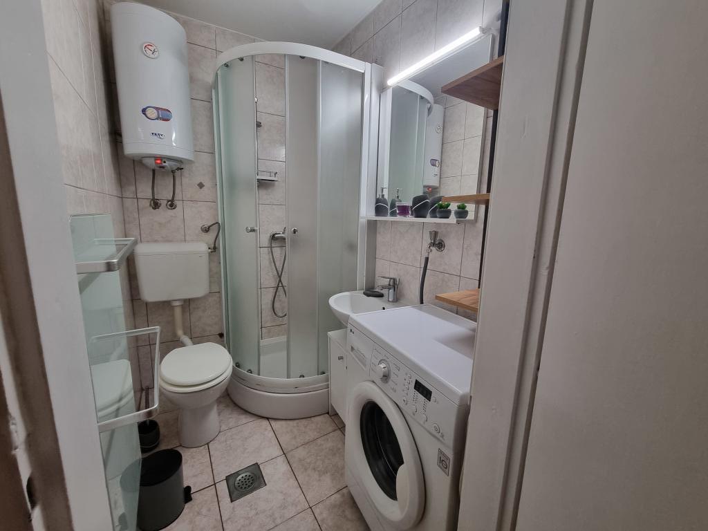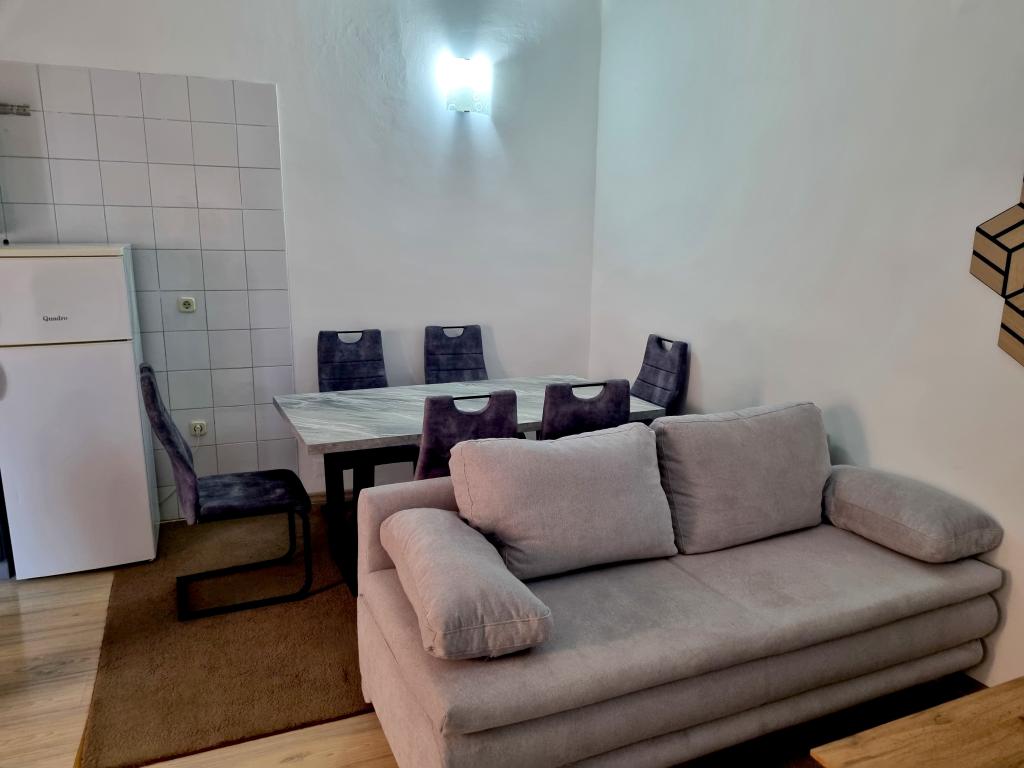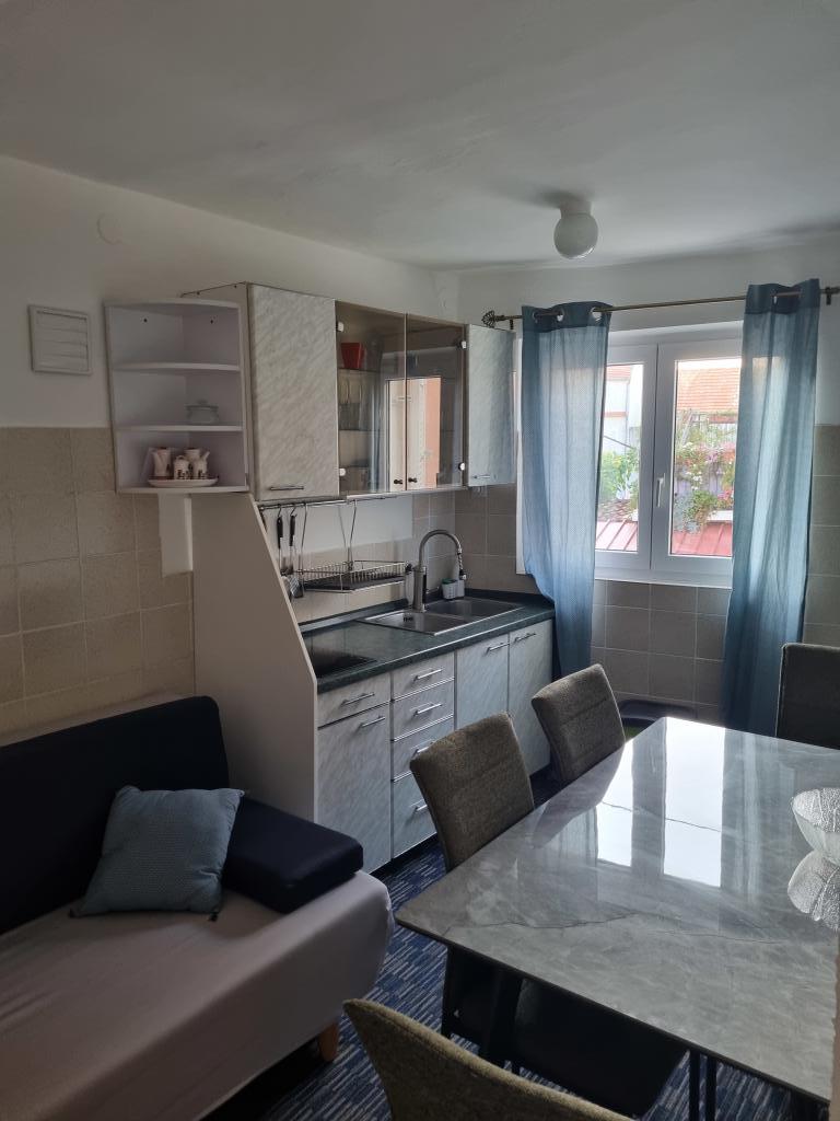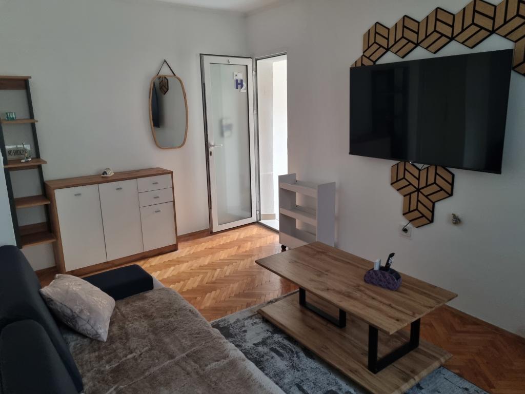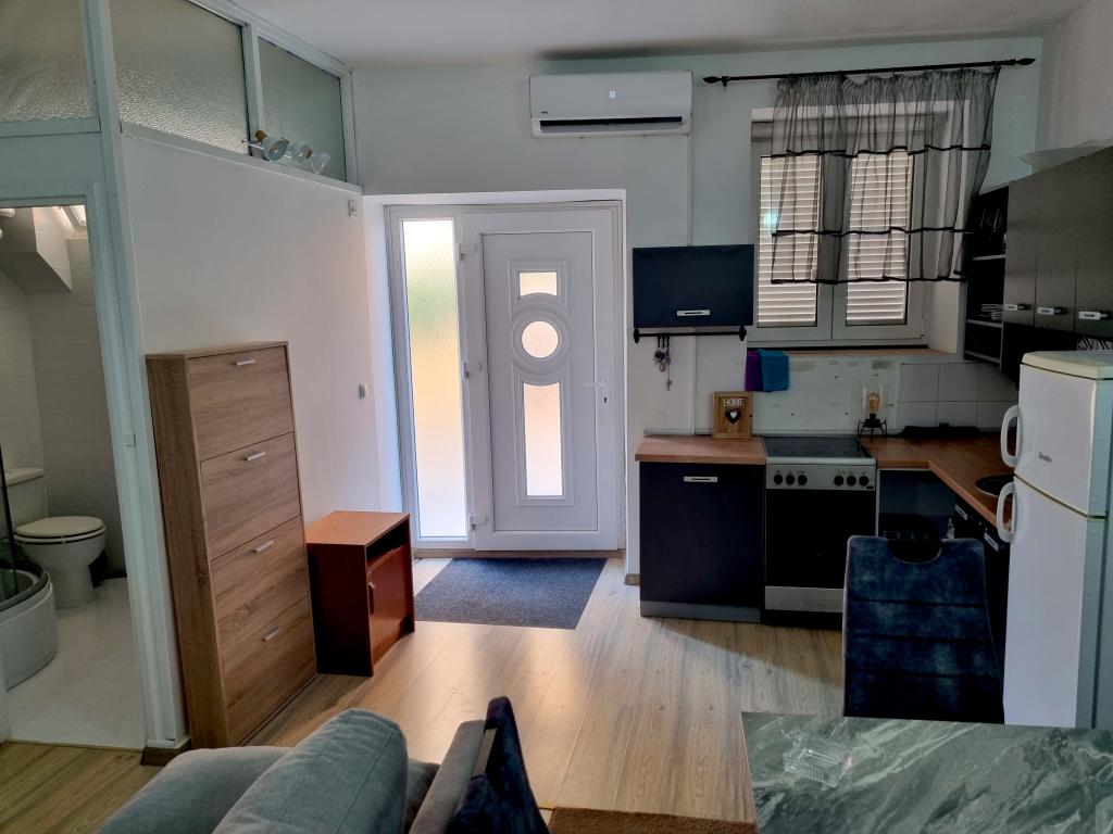 Dom z apartamentami położony jest w centrum Vodic, przy małej bocznej uliczce. Goście obu apartamentów mają do dyspozycji zadaszony taras z muralem i miejscem do odpoczynku i spotkań towarzyskich, a także taras na dachu z grillem, leżakami i widokiem na morze i miasto.