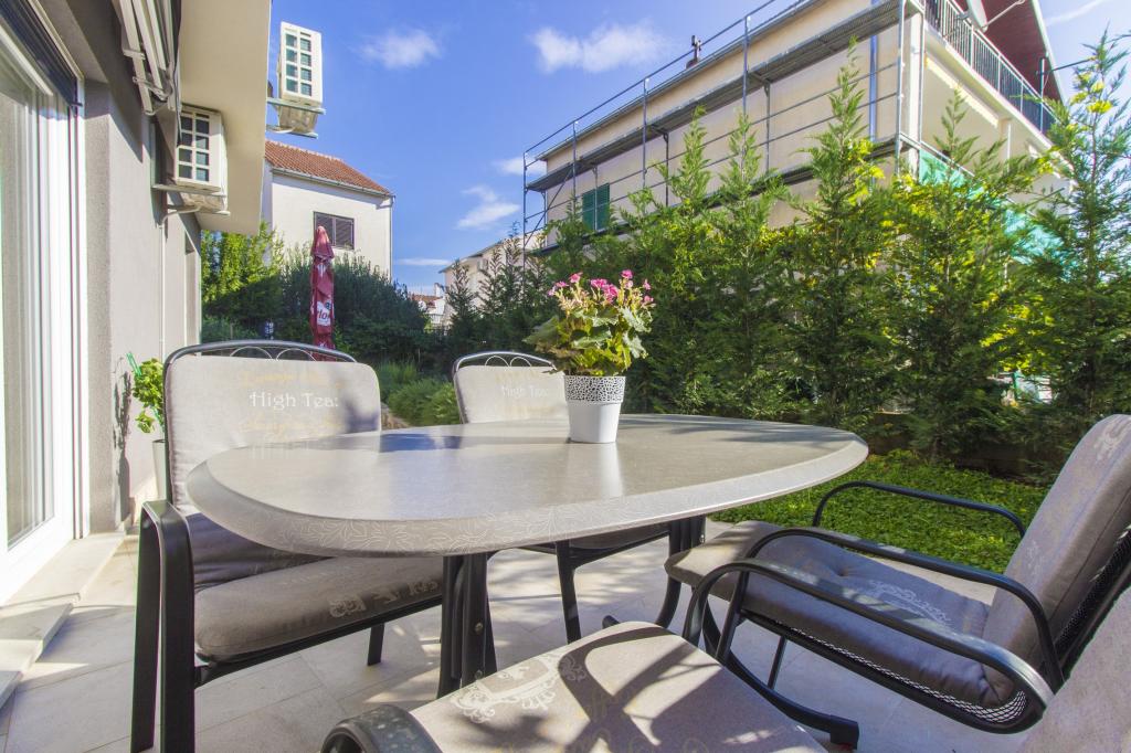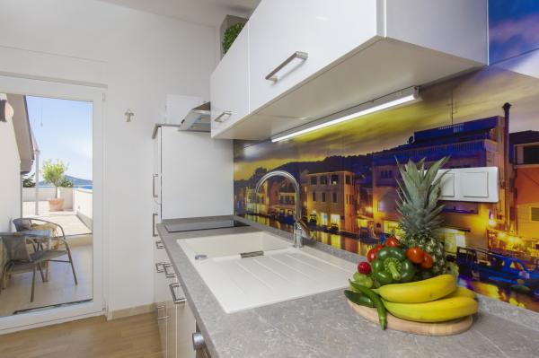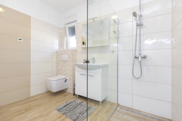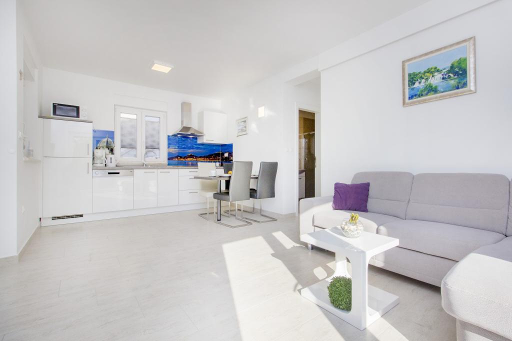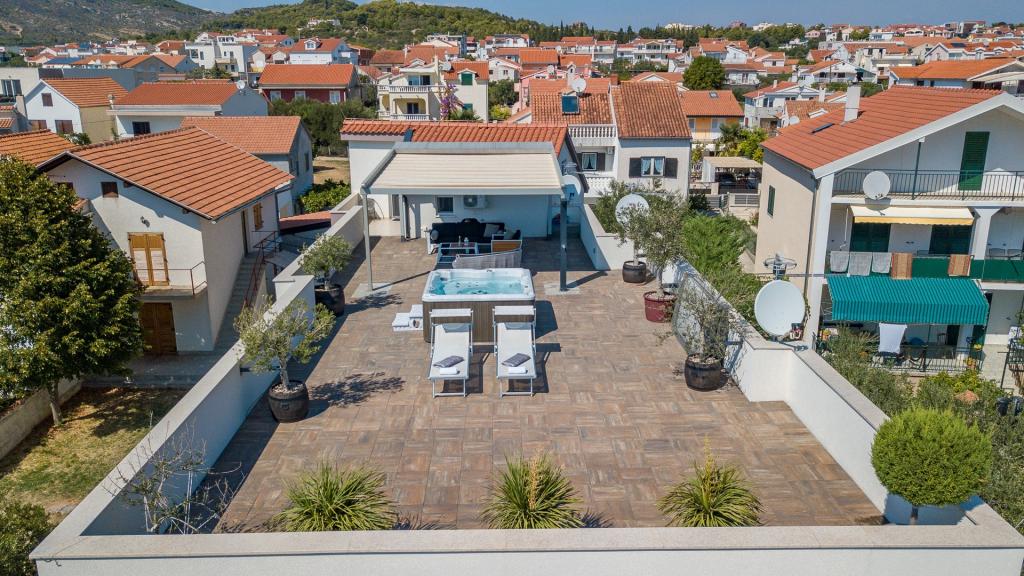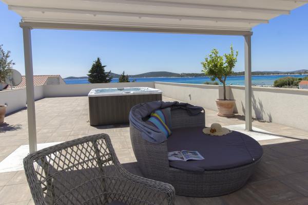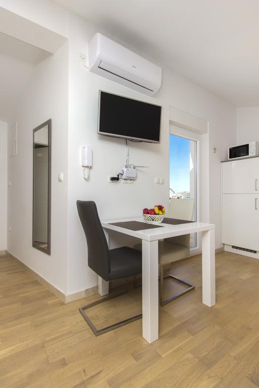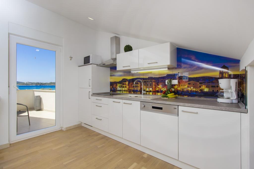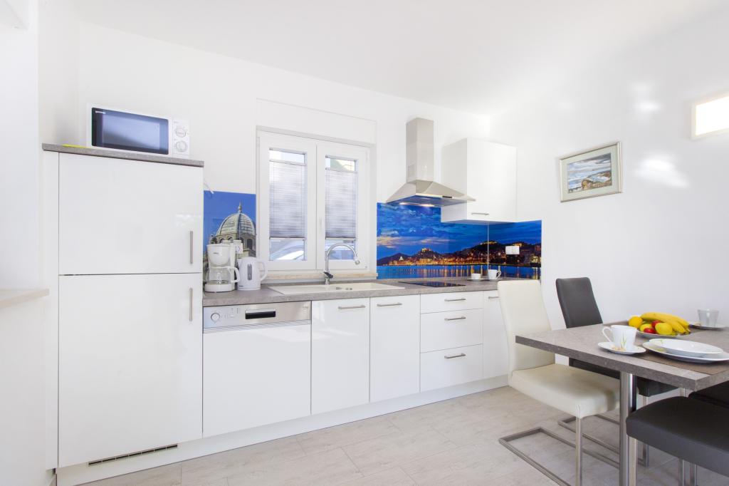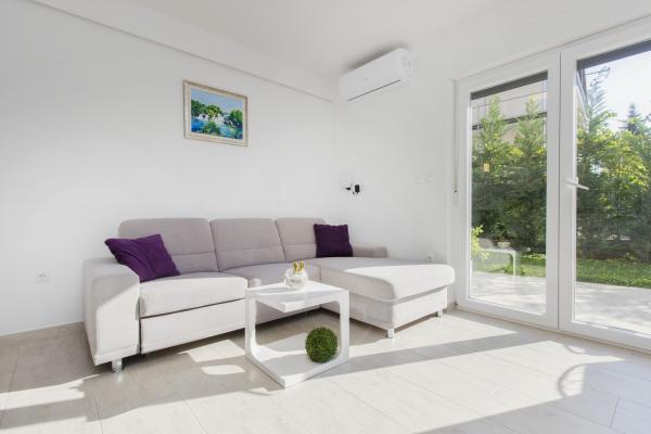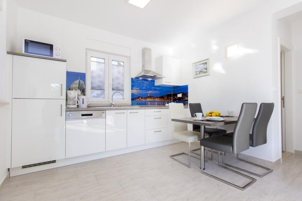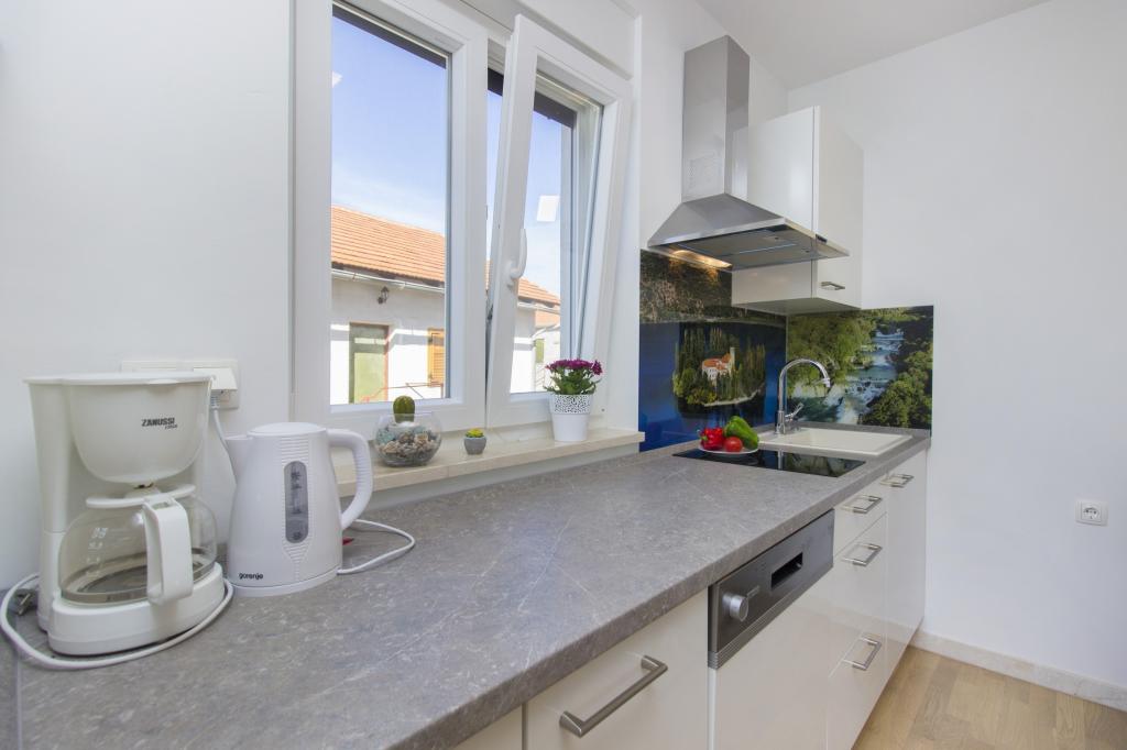 W Vodice 50m od morza, niedawno odnowione iw pełni wyposażone atrakcyjne apartamenty sklasyfikowane według czterech gwiazdek. Trzy apartamenty na trzech piętrach (parter, 1. piętro, 2. piętro), każde z osobnym wejściem, widokiem na morze i miejscem parkingowym. Apartament 1. na parterze składa się z kuchni, jadalni i salonu jako całości z dostępem do tarasu, sypialni i łazienki. Kuchnia jest w pełni wyposażona i wyposażona w przybory kuchenne i sprzęt AGD (mikrofalówka, pralka, czajnik, ekspres do kawy). Mieszkanie na 1. piętrze składa się z kuchni, jadalni i salonu jako całości z dostępem do tarasu, sypialni i łazienki. Kuchnia jest w pełni wyposażona i wyposażona w przybory kuchenne i sprzęt AGD (mikrofalówka, pralka, czajnik, ekspres do kawy). Mieszkanie na 3 piętrze, studio, kuchnia, jadalnia i sypialnia jako całość z dużym tarasem i widokiem na morze. Pościel, ręczniki, wypożyczalnia rowerów, opłata klimatyczna są wliczone w cenę.