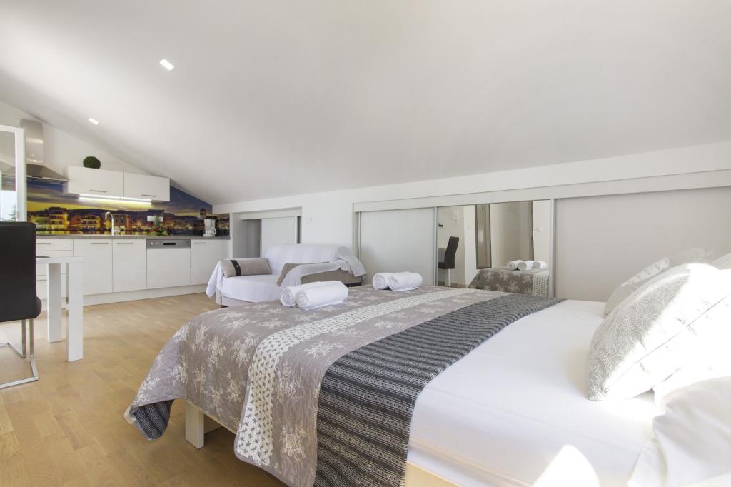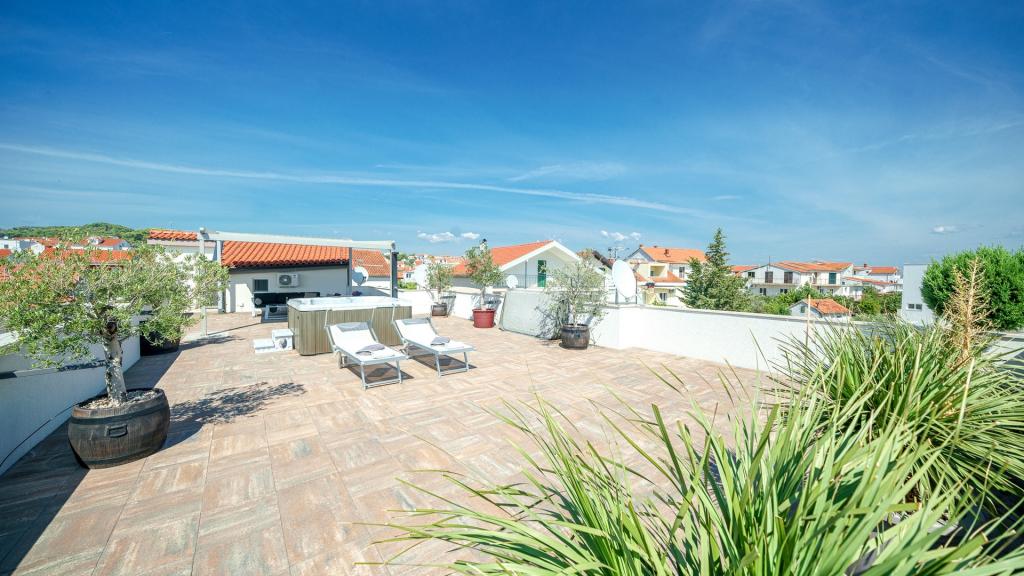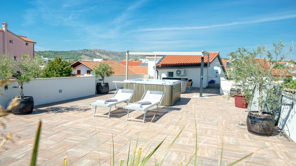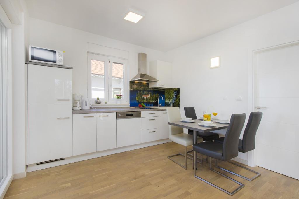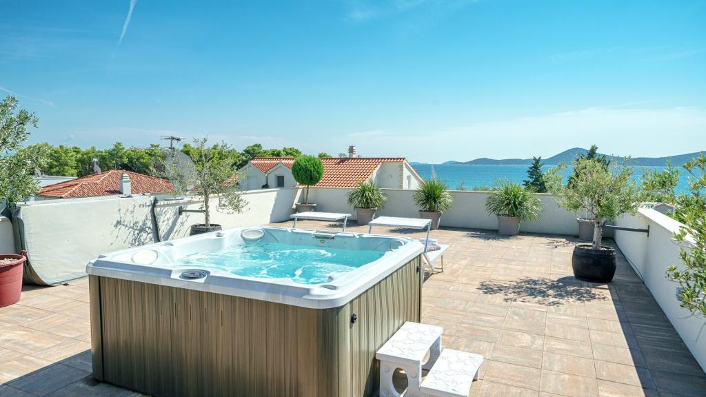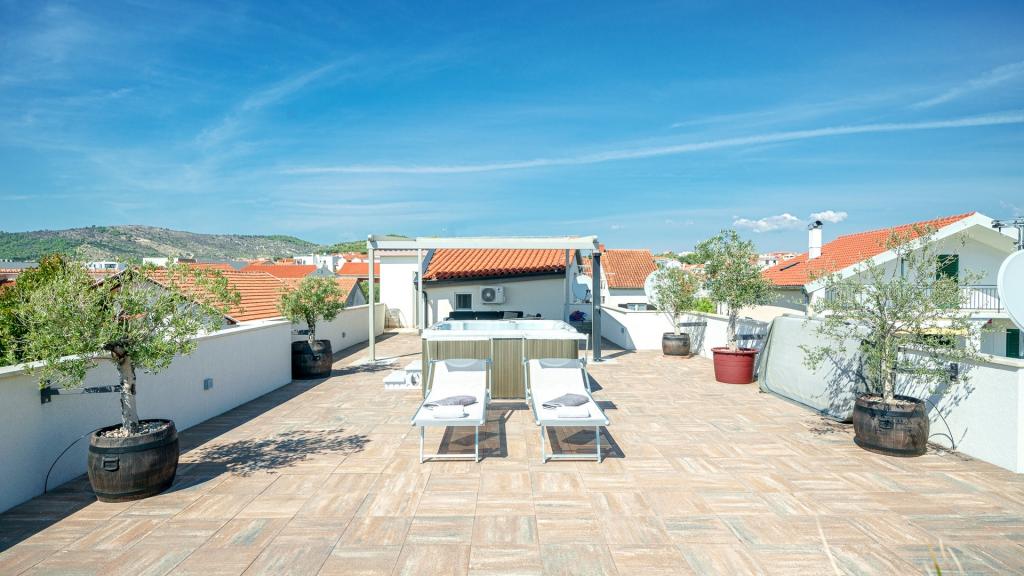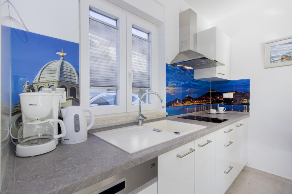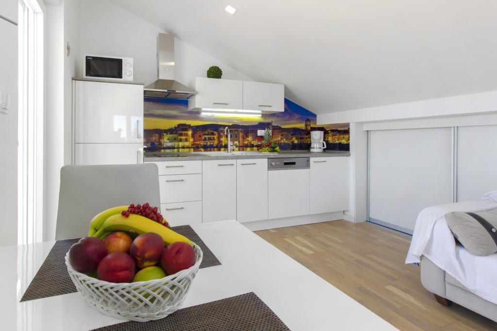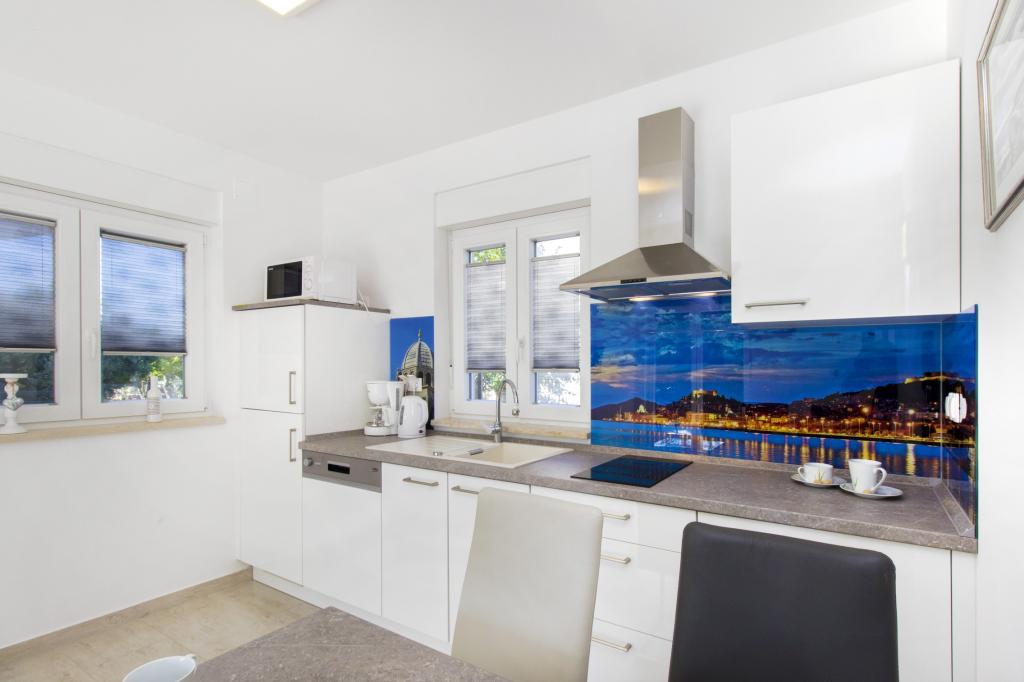 W Vodice 50m od morza, niedawno odnowione iw pełni wyposażone atrakcyjne apartamenty sklasyfikowane według czterech gwiazdek. Trzy apartamenty na trzech piętrach (parter, 1. piętro, 2. piętro), każde z osobnym wejściem, widokiem na morze i miejscem parkingowym. Apartament 1. na parterze składa się z kuchni, jadalni i salonu jako całości z dostępem do tarasu, sypialni i łazienki. Kuchnia jest w pełni wyposażona i wyposażona w przybory kuchenne i sprzęt AGD (mikrofalówka, pralka, czajnik, ekspres do kawy). Mieszkanie na 1. piętrze składa się z kuchni, jadalni i salonu jako całości z dostępem do tarasu, sypialni i łazienki. Kuchnia jest w pełni wyposażona i wyposażona w przybory kuchenne i sprzęt AGD (mikrofalówka, pralka, czajnik, ekspres do kawy). Mieszkanie na 3 piętrze, studio, kuchnia, jadalnia i sypialnia jako całość z dużym tarasem i widokiem na morze. Pościel, ręczniki, wypożyczalnia rowerów, opłata klimatyczna są wliczone w cenę.