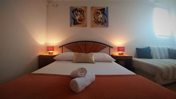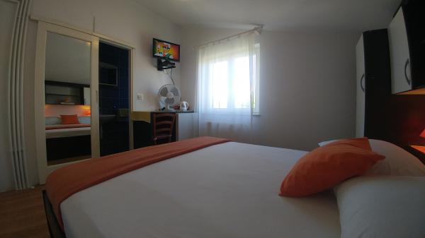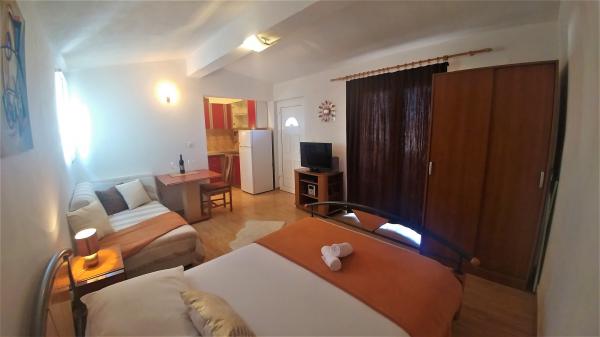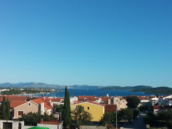 Widok na Morzu Adriatyckim, Apartamenty Mario jest w spokojnej okolicy zaledwie 6 minut spacerem od Starego Miasta Vodice i najbliższej plaży. Oferuje on bezpłatny bezprzewodowy dostęp do Internetu oraz klimatyzowane apartamenty z balkonem lub tarasem i telewizorem. Apartamenty Mario ma grilla dostępne dla gości. Jest kuchnia wyposażona w nowoczesne urządzenia. Łazienkę z prysznicem i suszarką do włosów. Różne restauracje, bary i sklepy znajdują się w bezpośrednim sąsiedztwie. Zabytkowe centrum jest pełne zabytków, takich jak Kościół Świętego Krzyża Coric wieży, sanktuarium Matki Bożej z Karmelu. Najbardziej popularna plaża o nazwie Blue Beach, wynosi 700 m. Najbliższy przystanek autobusowy znajduje się 200 metrów od hotelu.