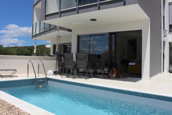 Luksusowy apartament w Matthew 80qm. Mieszkanie ma 2 sypialnie, duży pokój dzienny z wbudowaną kuchnią. Mieszkanie jest pierwszej klasy wyposażone i umeblowane. Apartament znajduje się basen.