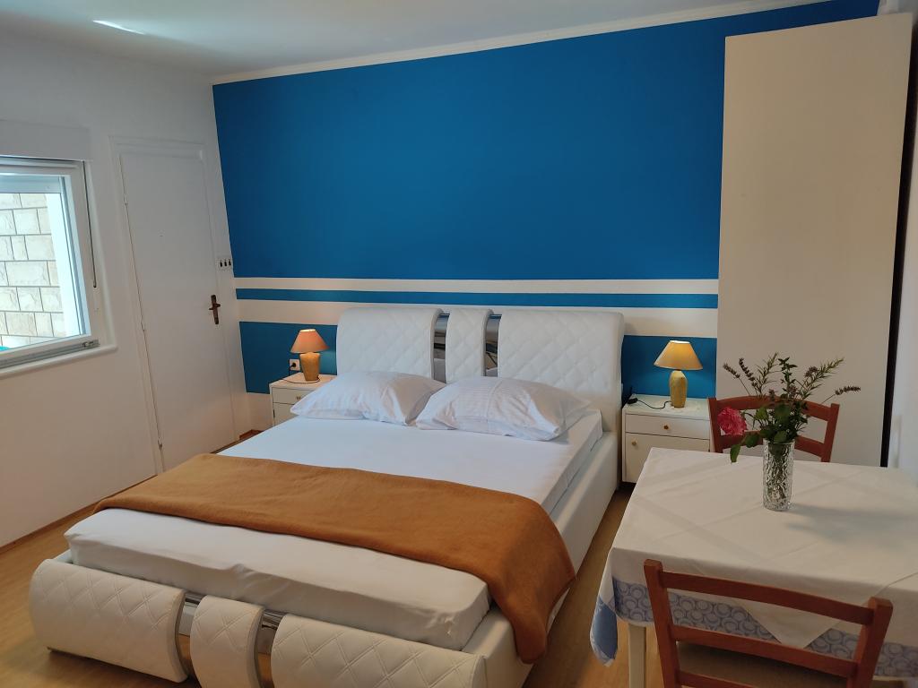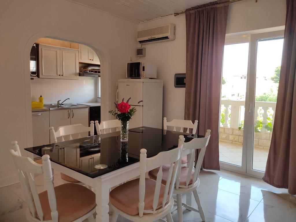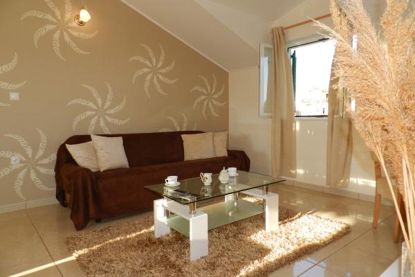 Nasze apartamenty usytuowane są w cichej ulicy, zaledwie dwie minuty spacerem do plaży, mniej niż pięć minut spacerem od centrum miasta. Dzięki lokalizacja apartamenty są odpowiednie dla rodzin z małymi dziećmi. Wszystkie nasze apartamenty są przestronne i wygodne, z balkonem lub tarasem, wyposażone w klimatyzację, dostęp do Internetu oraz telewizję satelitarną. W przedniej części domu znajduje się duży taras z kamiennym grillem dostępna dla wszystkich gości. Na dziedzińcu przed domem jest zarezerwowany parking dla samochodu. Cena wynajmu apartamentu zależy od długości i okresu pobytu. Oferujemy również zniżki na dłuższe pobyty.