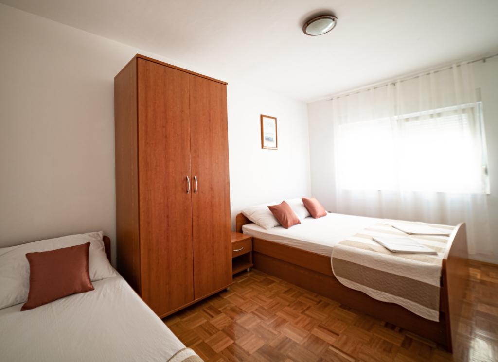 KwaterModel płatności: Zaliczka wynosi 30% całkowitej uzgodnionej ceny pobytu, a płatność następuje na konto giro najemcy apartamentu. Pozostała część 70% ustalonej ceny płatna jest gotówką po przybyciu do apartamentu. Potwierdzenie wpłaty zaliczki przesyłamy w formie pisemnej (voucher). Przyjazd gości następuje po godzinie 12, a wyjazd goście są do godziny 10:00. Ceny podane na pierwszej stronie ogłoszenia są średnimi cenami informacyjnymi za 6/7/8/9 miesięcy. Apartamenty A2+1 kosztują od 65 € do 80 €, a A3+1 od 80 € do 100 €, wszystko w zależności od okresu pobytu, liczby gości/apartamentu, liczby dni pobytu, ustalonych warunków rezerwacji i płatności . Cena obejmuje 1 miejsce postojowe dla samochodów osobowych do maksymalnej długości 5 m.
