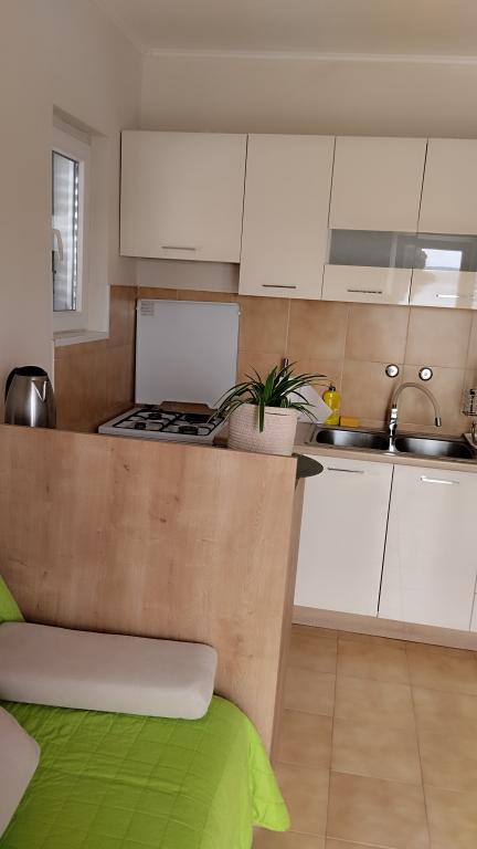 Dwa apartamenty na drugim piętrze domu rodzinnego tuż przy Blue Beach. Apartament dwupokojowy został niedawno odnowiony, a apartament jednopokojowy został udekorowany dopiero w zeszłym roku. Plaża znajduje się około 70 metrów od domu, a centrum miasta jest oddalone o 600 metrów. Na plaży znajdują się liczne obiekty gastronomiczne i udogodnienia dla dzieci, a także specjalnie przygotowana plaża dla dzieci. Plaża przed domem jest piaszczysta, a nieco dalej, około 20 metrów, jest kamienista. Wejście do mieszkania. możliwy wyjazd po godz. 12.00 do godz. 10.00.
