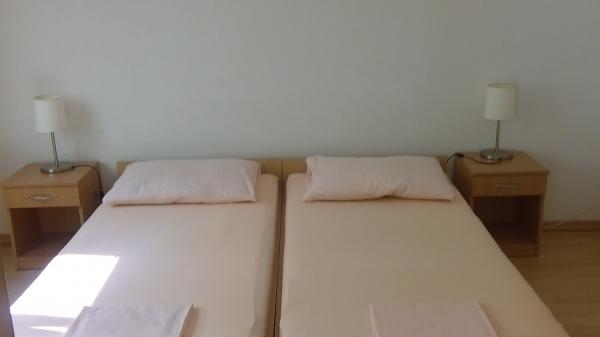 Wynajmujemy dwa mieszkania o 52m2 dla 4-6 osób w spokojnej ulicy. Apartamenty składają się z salonu, kuchni, dwóch sypialni, łazienki z prysznicem i balkon. Wyposażone w TV / SAT, klimatyzację, nieograniczony dostęp do Internetu oraz grillem.