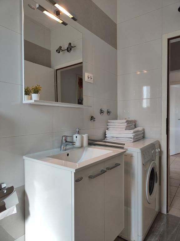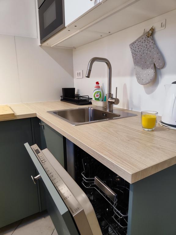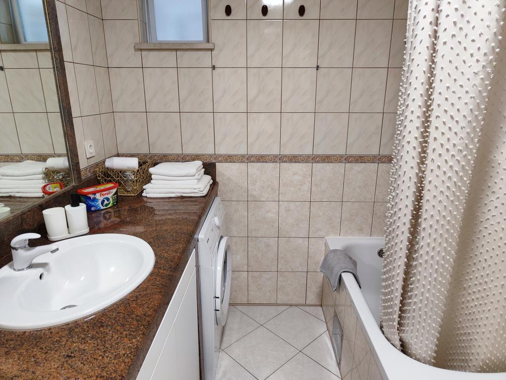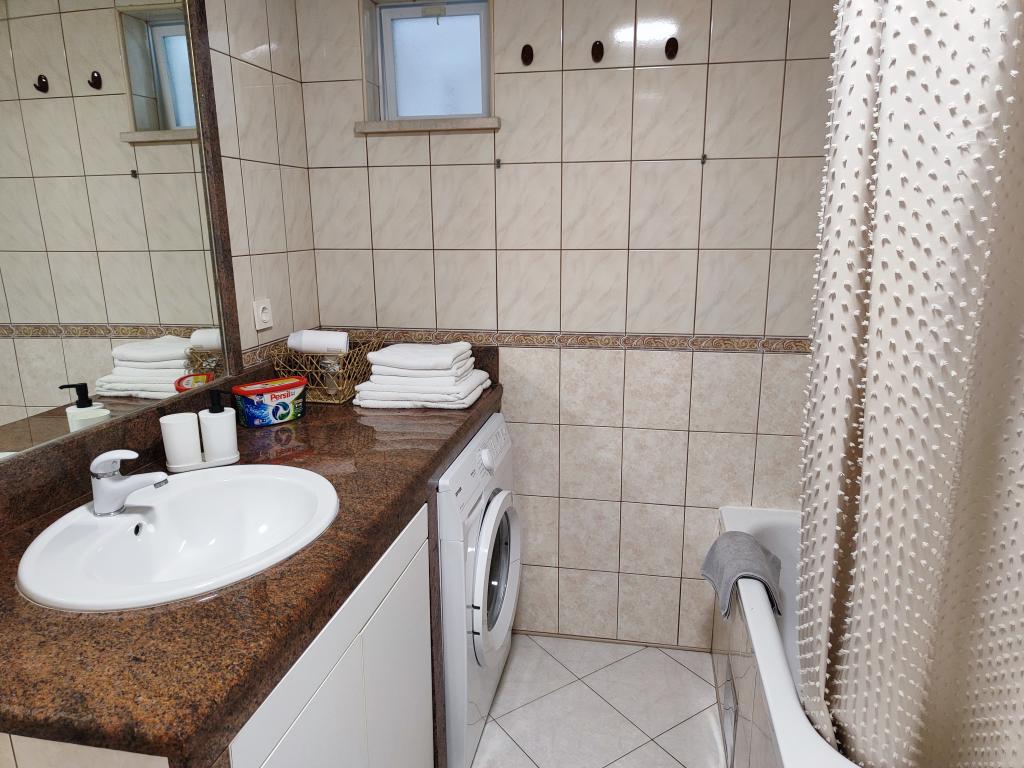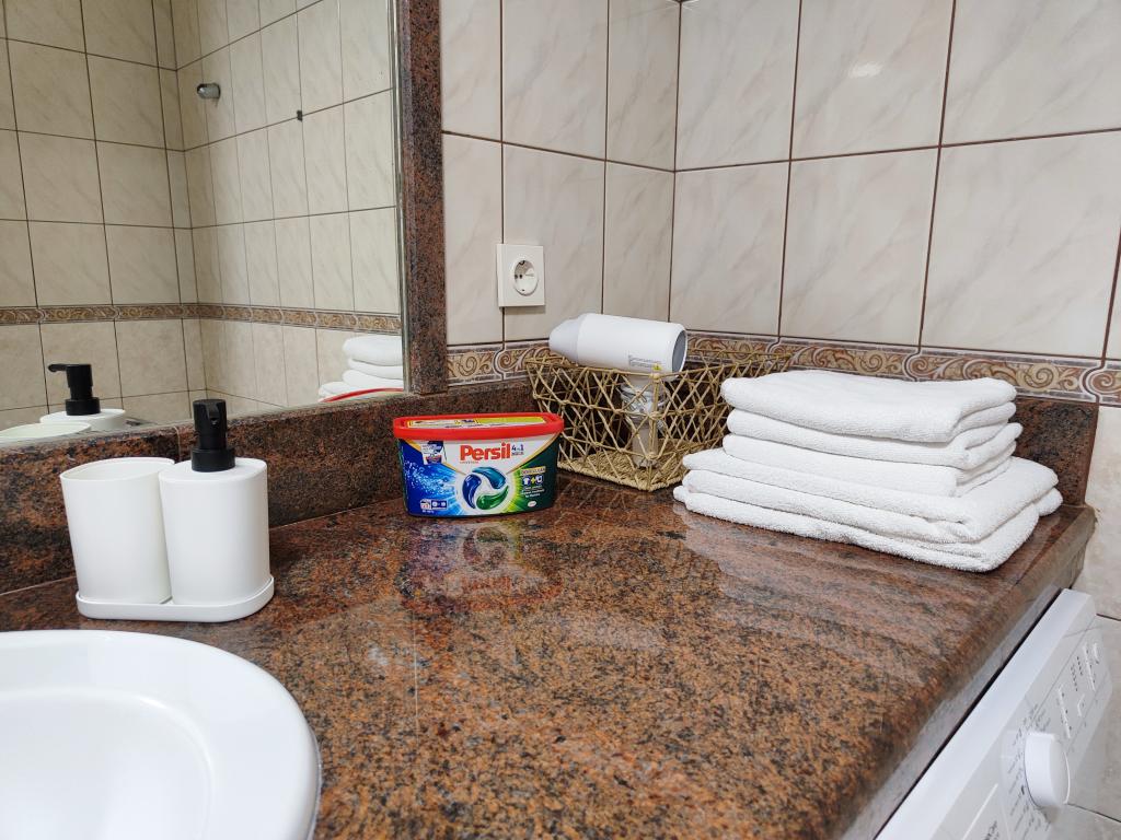 W kuchni są przyprawy, olej, ocet i detergent. W zestawie z ekspresem znajdują się także kapsułki. Wraz z urządzeniami dostępne są tabletki i kapsułki do pralek i zmywarek. Deska do prasowania i żelazko do ubrań znajdują się w części wspólnej i są dostępne dla każdego. Jesteśmy do Państwa dyspozycji w przypadku wszelkich zapytań i sugestii, czy to w sprawie wycieczek, wynajmu łodzi, rowerów itp.