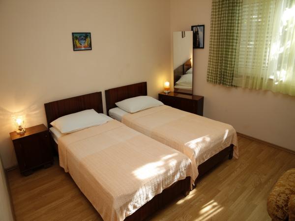 Spadina Apartamenty znajdują się w cichej ulicy, 5 minut od przestronnych, pięknych plaż i 5 minut od centrum miasta z wszystkich udogodnień. Mamy 2 apartamenty oraz 1 apartament typu studio. , Goście zapewniają pościel, ręczniki oraz w pełni wyposażoną kuchnię i oferują bezpłatny, strzeżony parking. w zagrodzie. Jednym z nich jest studio dla 2 osób, druga to apartament dla 4-5 osób (2 pokoje, kuchnia, łazienka i taras, a trzeci apartament dla 4-6 osób (2 pokoje, kuchnia, łazienka i balkon .. Wszystkie 3 apartamenty są klimatyzowane i wyposażone w internet, Telewizja satelitarna /, a goście mają do dyspozycji taras / balkon w każdym apartamencie. Każdy apartament posiada własne wejście Wszyscy goście mogą korzystać z grilla w ogrodzie.