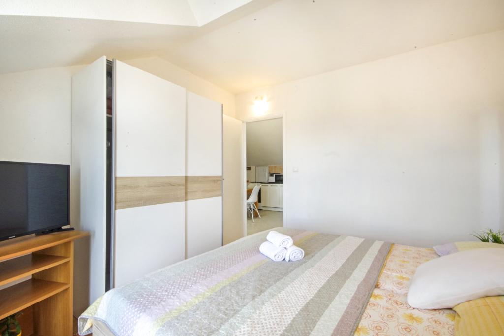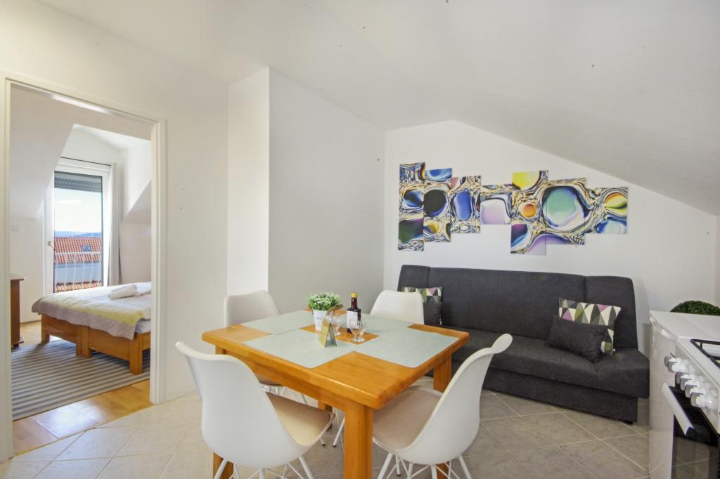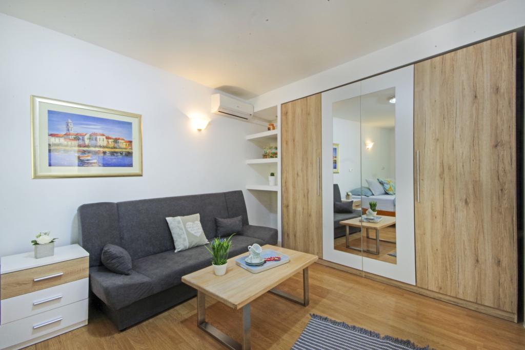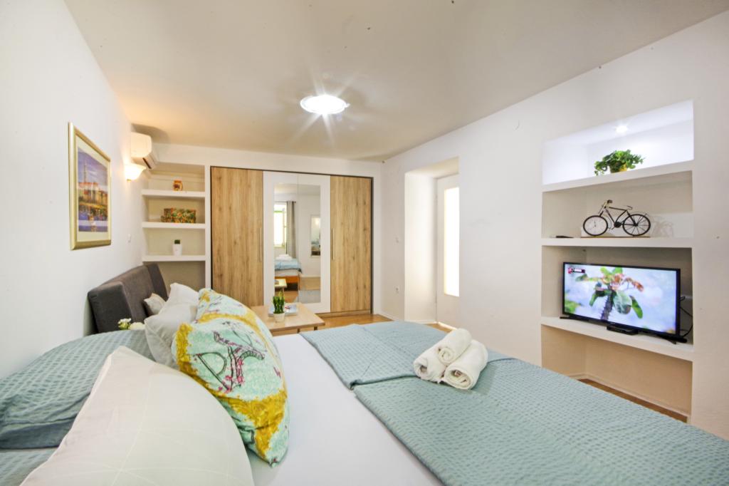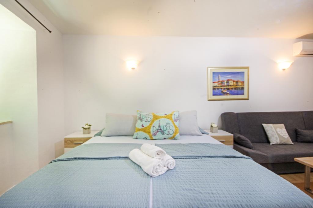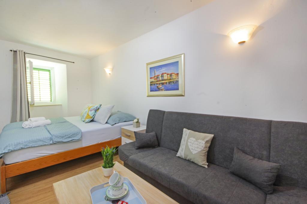Specjalny apartament w stylu tawerny w centrum Vodic z dwiema sypialniami. Jedna sypialnia z podwójnym łóżkiem i jedna sypialnia z podwójnym łóżkiem i łóżkiem pojedynczym. Masz własny parking obok mieszkania.