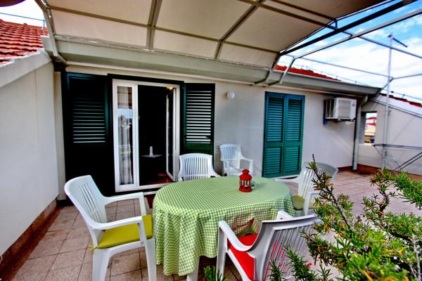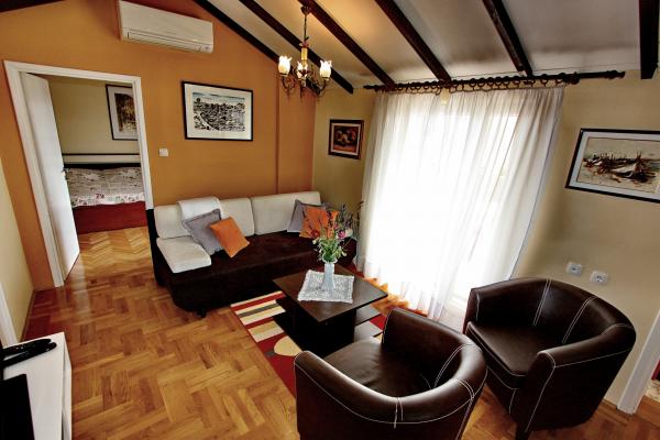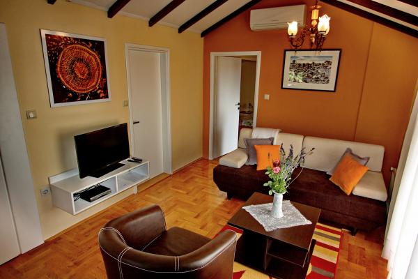 Apartament znajduje się w rodzinnym domu, w pobliżu centrum miasta i wszystkie niezbędne urządzenia: targowiska, sklepy, banki, przychodnie, apteki, PKS, lotniska i różne restauracje i lokale rozrywkowe. Dead end z trzech domów jednorodzinnych i parking w cieniu winorośli, zapewnia spokój i odmor.Apartmani noc zamknięty powierzchni 65m / 2 i taras 20m / 2, który jest markizy chronione przed słońcem, i zielony arlama z pogleda.Dvije dwuosobowe sypialnie, salon pokój, kuchnia i łazienka, aby wewnętrzna mieszkanie treść jest wyposażone we wszystkie urządzenia do pracy przez cały rok: centralne ogrzewanie, klimatyzację, TV, SAT, internet z możliwością korzystania z kuchni letniej (grill) oraz ogród z tarasem i rublja.Dozvoljeni prania są małe Zwierzęta i palenia. Życzymy miłego pobytu w naszym środowisku.