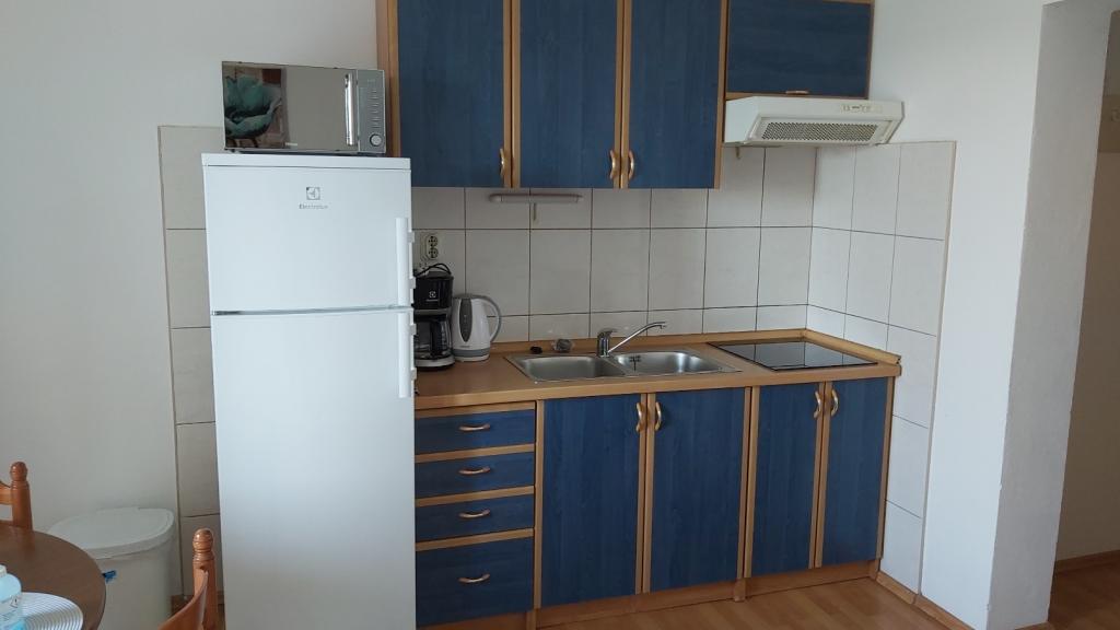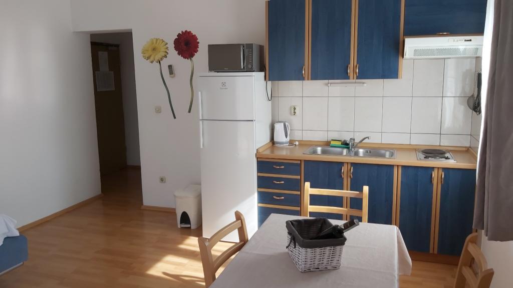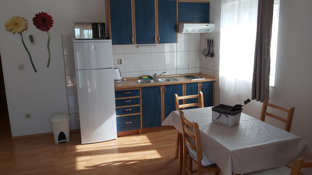 W pełni i pięknie wyposażone apartamenty położone w spokojnej okolicy Vodic w rodzinnym domu 50 m od plaży, pierwszy rząd do morza. Na pierwszym piętrze znajdują się dwa mieszkania. Powierzchnia każdego mieszkania wynosi około 45 m2, składają się z jednej sypialni, łazienki, kuchni z jadalnią oraz tarasu z widokiem na morze. Pojemność maksymalnie 4 osoby na mieszkanie. Apartamenty wyposażone są w klimatyzację, TV/SAT, internet (Wi-Fi), kuchenkę mikrofalową, możliwość skorzystania z łóżeczka dziecięcego, żelazko, grill i parking. Obiekt położony jest minutę spacerem od plaży, 10 minut spacerem od centrum. Zarezerwuj nocleg na czas i spędź przyjemne wakacje w naszym domu.