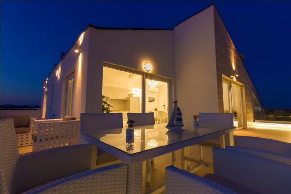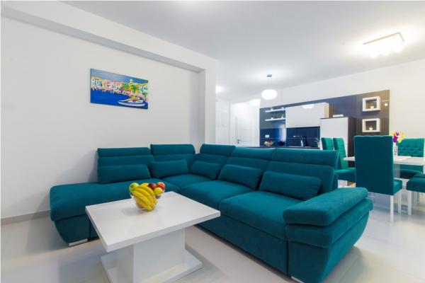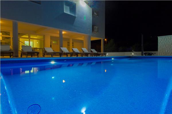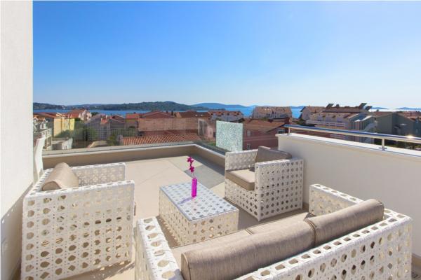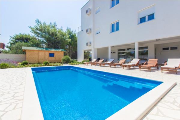 Villa Royal składa się z 6 apartamentów, które są skategoryzowane z 5 gwiazdek. W willi znajduje się basen z leżakami. Położony w miejscowości Srima, w pobliżu miasta, i jest w odległości 350 metrów od morza. Są jasne i klimatyzowane apartamenty z bezpłatnym bezprzewodowym dostępem do Internetu, telewizorem LCD z kanałami telewizji satelitarnej, taras oraz bezpłatny parking. Wszystkie nowoczesne apartamenty wyposażone są w klimatyzację w salonie i sypialni, w pełni wyposażona kuchnia ze zmywarką i piekarnikiem elektrycznym i lodówką. Każdy apartament posiada 2 łazienki i toalety. Łazienki wyposażone są w wannę, pralkę, prysznicem i suszarką do włosów. Najbliższa plaża znajduje się w odległości 350 metrów, a także restauracja i kawiarnia. Guidance Center jest 1500 metrów, Sibenik 15 km, Zadar 60 km, Park Narodowy Krka 30 km Skradin 30 km, Split 90 km i położony jest w pobliżu Parku Narodowego.