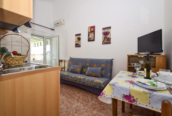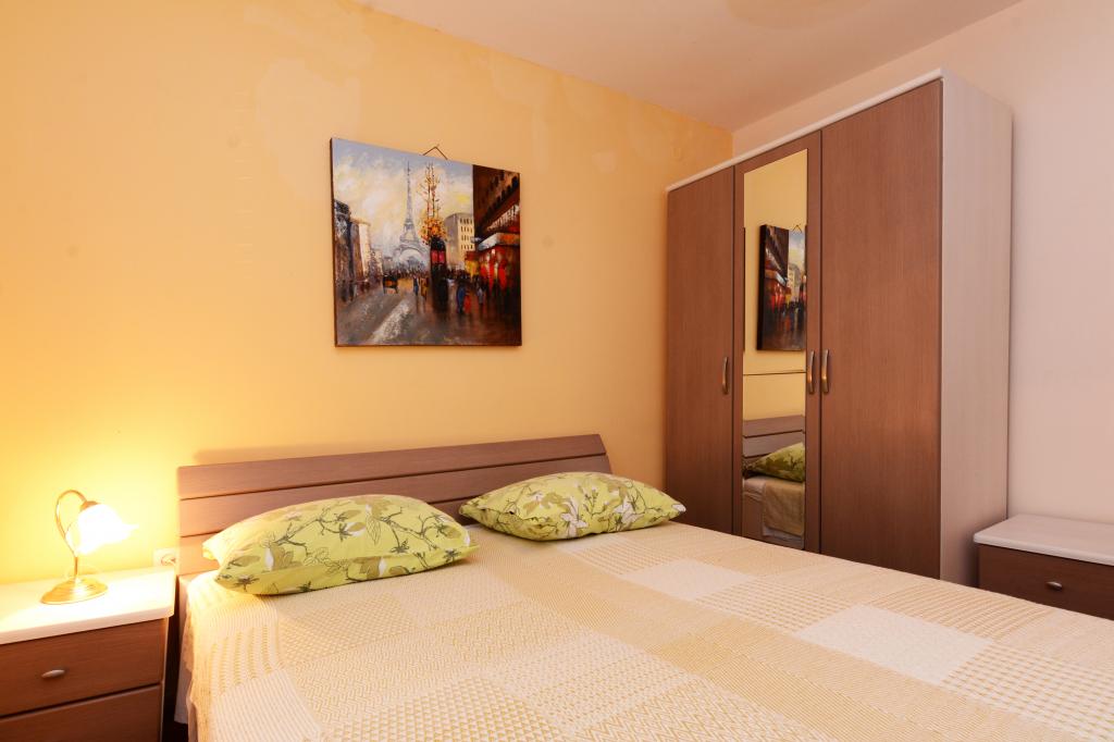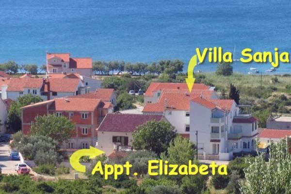 Villa Sanja to nowoczesny budynek, położony w jednej z najlepszych lokalizacji w Vodicach, 350 metrów od plaży, składający się z 7 apartamentów z balkonem lub tarasem. Wszystkie siedem apartamentów posiada piękny widok na morze. W każdym apartamencie istnieje możliwość wstawienia dodatkowego łóżka. Apartamenty są nowocześnie urządzone i niezwykle przestronne. 5 Apartament dla dwóch osób ma powierzchnię 38 m² - składa się z sypialni, salonu z kuchnią i trzyosobową sofą oraz balkonu. 2 apartamenty dla 2 osób o powierzchni 50 m² z salonem, kuchnią, sypialnią, łazienką i dużym balkonem lub tarasem. Jeden apartament, całe piętro dla 8-10 osób: • cztery duże sypialnie dwuosobowe, w tym dwie z trzecim łóżkiem • cztery łazienki z toaletami, duża kuchnia, pokój wspólny. • Parking na terenie posesji lub w domu • około 15 minut spacerem do centrum Vodic • około 5 minut spacerem do plaży Ten dom rodzinny znajduje się około 350 metrów od plaży. Parkowanie na terenie obiektu lub przy domu.