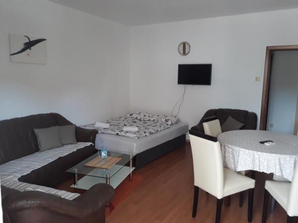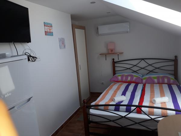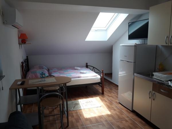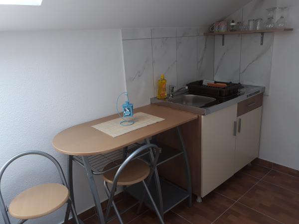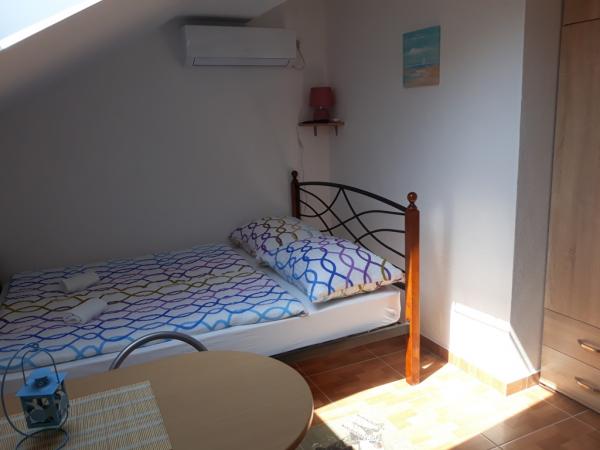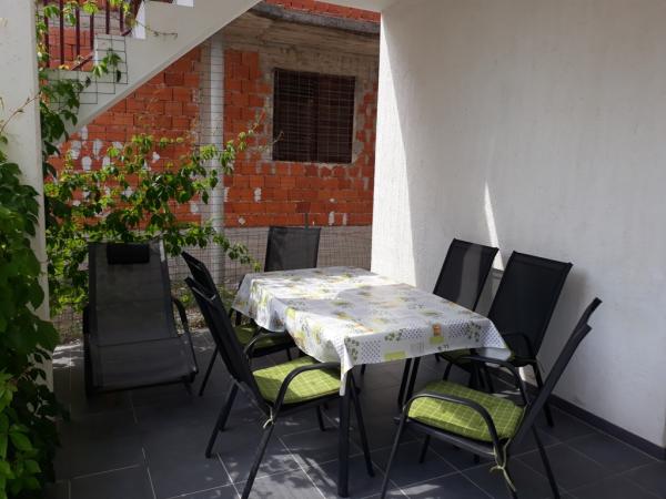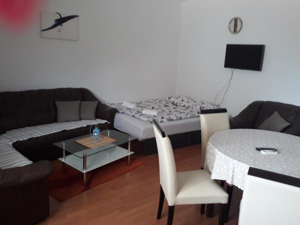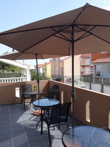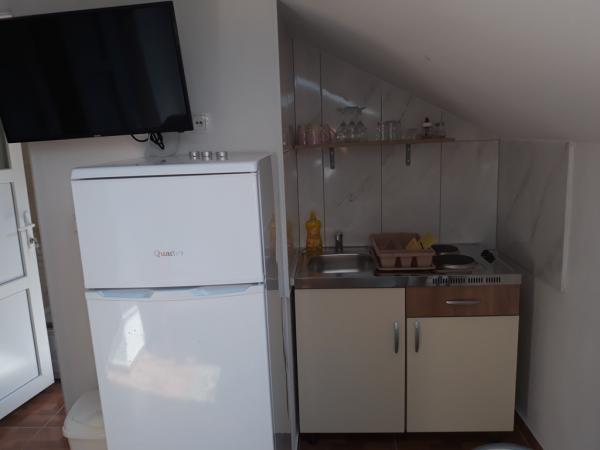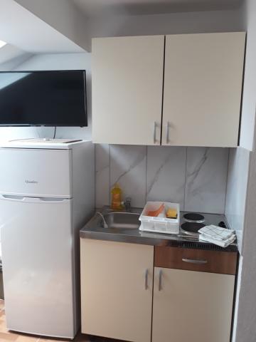 Posiadamy nowo wybudowane apartamenty w atrakcyjnej lokalizacji w Vodicach, w obiekcie znajdują się 3 apartamenty typu studio, każdy z nich jest nowocześnie wyposażony w kuchnię, łazienkę, podwójne łóżko, telewizor... w apartamentach jest wifi i klimatyzacja. ..kuchnie są wyposażone we wszystko, co potrzebne do użytku.... . ręczniki i pościel.... . do każdego apartamentu przynależy parking strzeżony obok budynku....apartamenty posiadają także parasol, który można zabrać na plażę....Apartamenty znajdują się na pierwszym piętrze gdzie znajduje się duży taras z parasolami.... Na parterze znajduje się apartament dla 4 osób z dużym pięknym tarasem, sypialnia, pokój dzienny z dwoma dostawkami, kuchnia wyposażona we wszystko co potrzebne, łazienka z pralką... Apartamenty są 500 metrów od plaży, sklep 400 metrów.... restauracje 450 metrów....