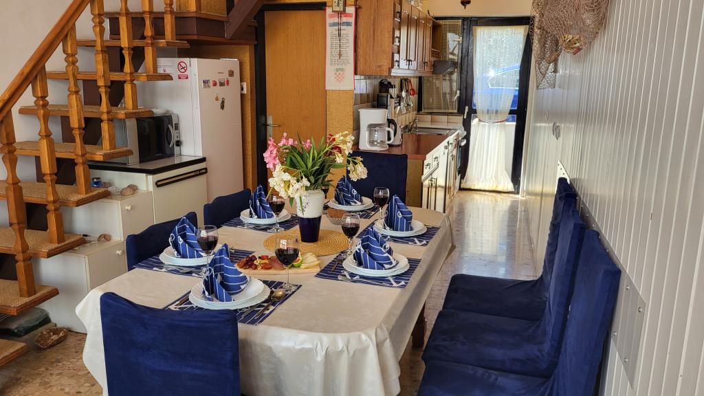 Witamy w domu wakacyjnym Perlica, położonym w centrum Vodic, przy ulicy Brunac 59, zaledwie 280 m od morza. Dom jest odpowiedni dla rodzin, a wszystkie udogodnienia są w pobliżu, bez konieczności korzystania z samochodu. Sklep znajduje się 120 m dalej, restauracja 150 m dalej, stare miasto Vodice 200 m dalej, plaża kamienista 400 m dalej, a piaszczysta Błękitna Plaża Vodice, zdobywca Błękitnej Flagi, znajduje się 550 m dalej. Dom ma 3 sypialnie z podwójnymi łóżkami dla 6 osób + 1 dodatkowe łóżko, 2 łazienki, 2 balkony, duży taras z wbudowanym grillem, klimatyzację, TV, Wi-Fi, pralkę. Kuchnia wyposażona jest w zmywarkę, dużą lodówkę (308 l), osobną zamrażarkę (3 szuflady), kuchenkę, kuchenkę mikrofalową, ekspres do kawy, toster, czajnik, sztućce i przybory kuchenne. Bezpłatny parking dla 1 pojazdu jest zapewniony. Perlica to samodzielny obiekt, który zapewnia gościom pełną prywatność podczas pobytu w Vodicach, znanym ośrodku turystycznym w Chorwacji, będącym jedną z najbardziej zróżnicowanych i malowniczych części wybrzeża Dalmacji.