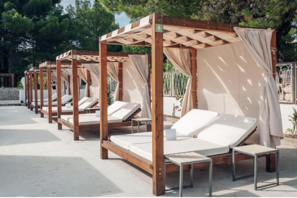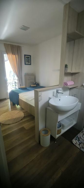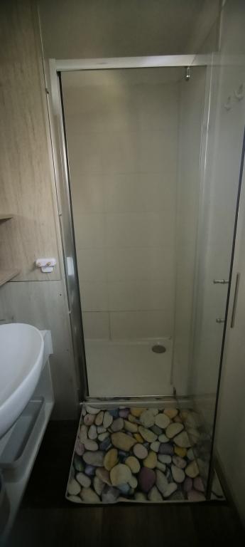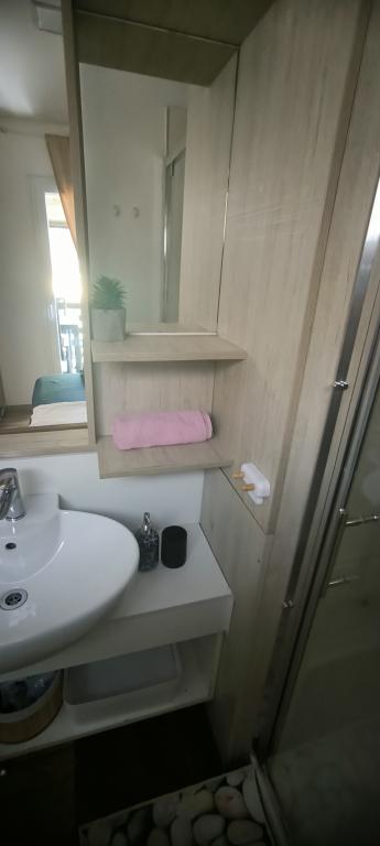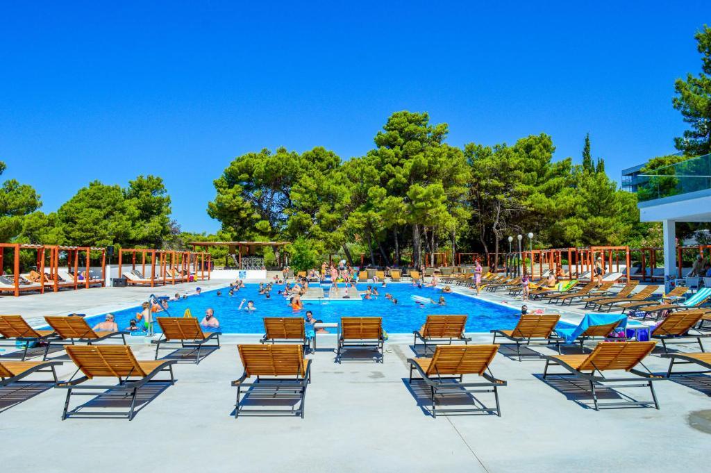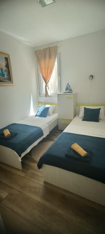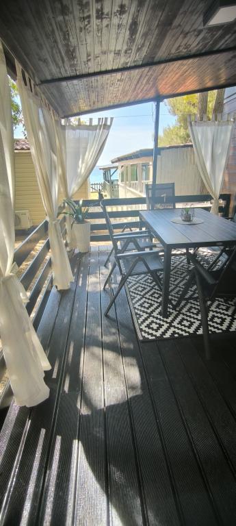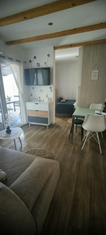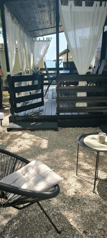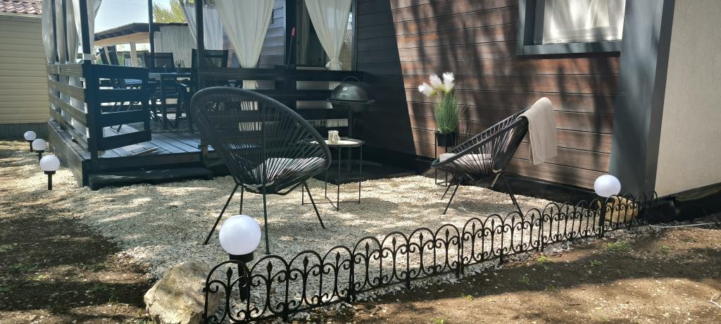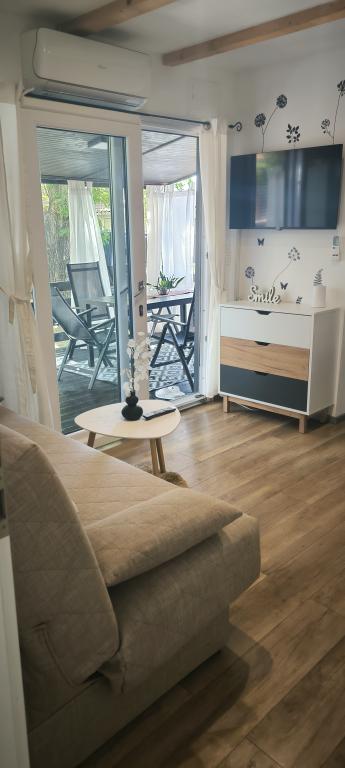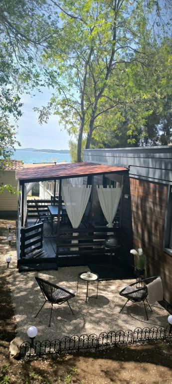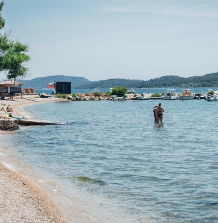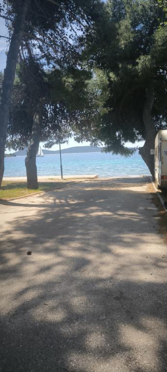 Domek mobilny położony jest w pięknej części Vodic, na terenie kempingu hotelu Imperial, 20 kroków od morza i plaży, która ciągnie się aż do centrum. 20 kroków do pierwszej restauracji znajdującej się nad domem na terenie hotelu i basenu. Dostępne są wszystkie udogodnienia hotelu, basen odkryty, basen kryty, restauracje, siłownia... Można popływać tuż pod domem, wypić kawę na plaży, popływać w basenie, zjeść coś pysznego, a wszystko to w promieniu 50 metrów. Dostępne są 2 sypialnie, każda z własną łazienką, pokój dzienny z kuchnią i tarasem. Miejsce parkingowe jest bezpłatne i znajduje się przed samym domem. Centrum Vodic, apteki, targi... 3 minuty samochodem, 15 minut pieszo. W pobliżu piekarnia, sklep... Do dyspozycji gości piekarnia i grill na świeżym powietrzu, bezpłatne WiFi, pościel.