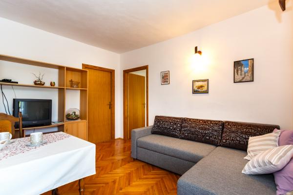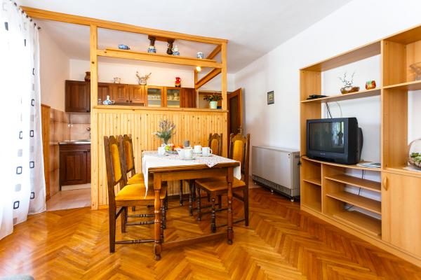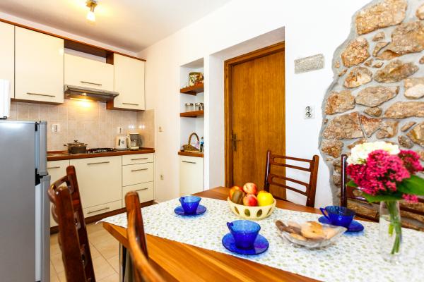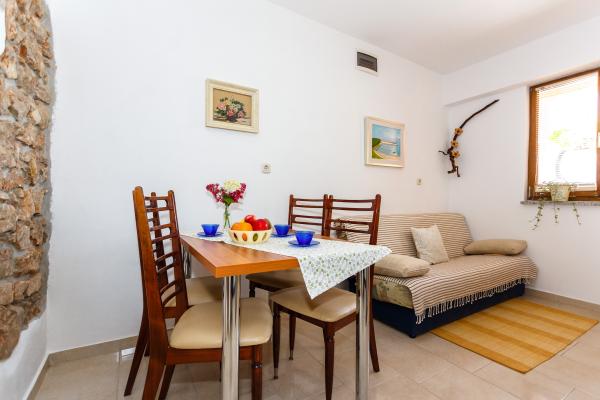 Apartamenty położone są w spokojnym miejscu, obok Risika Vrbnik na wyspie. Poniżej znajduje się piękna piaszczysta plaża Sv. Marak idealnym miejscem dla rodzin z dziećmi, wzbogacony obiektów gastronomicznych, w odległości 1, 5 km. Także w pobliżu znajdują się małe żwirowe zatoczki, również dojechać samochodem lub pieszo. Apartamenty Anica położone są w rodzinnym domu. Każdy apartament posiada taras z ogrodem i mnóstwem zieleni, parking w podwórzu. Każdy apartament ma jedno podwójne sypialnie, pokój dzienny z jadalnią, rozkładaną sofą (przeznaczoną dla jednej osoby dorosłej lub dwójki dzieci), kuchni i łazienki.