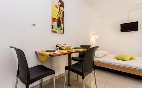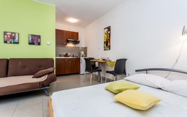 Nasze apartamenty położone są w spokojnej części miasta, skąd rozciąga się piękny widok na stare miasto i morze. Jesteśmy otoczeni przez nieskazitelnej przyrody, a do morza między nami tylko 200 metrów. Apartamenty znajdują się 10 minut spacerem do centrum i plaży.
