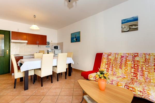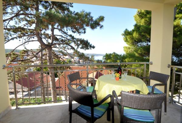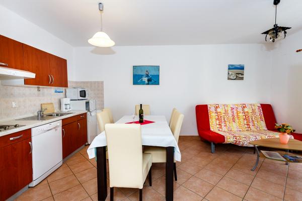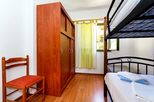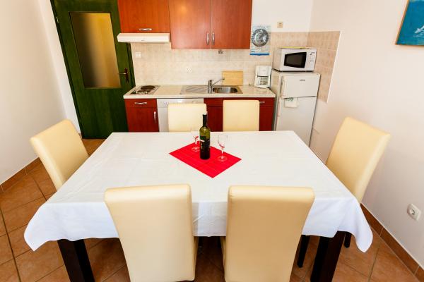 Apartamenty Maestral znajdują się w pobliżu plaży, w cichej i malowniczej okolicy, otoczone lasem sosnowym. Apartament oferuje piękny panoramiczny widok na morze. Apartamenty są dobrze wyposażone, a parking dla samochodów znajduje się przed domem.