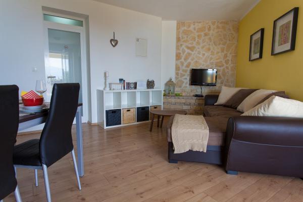Nowe i nowoczesne apartamenty w cichej części Vrbnik, z pięknym widokiem na Vrbnik i morza, w otoczeniu przyrody. Nasz dom znajduje się 10 minut spacerem od centrum miasta i plaży.
