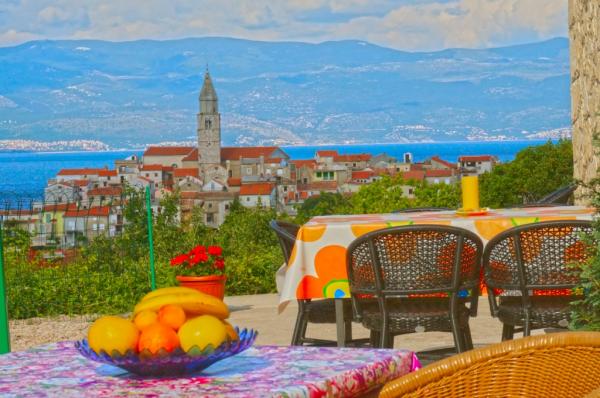 Apartament i Studio Noa znajdują się w spokojnej okolicy Vrbnik, w otoczeniu zieleni, z pięknym widokiem na morze i stare miasto. Obiekt położony jest 10 minut spacerem od centrum i plaży. Każda jednostka posiada własne wejście, parking i oddzielny taras.