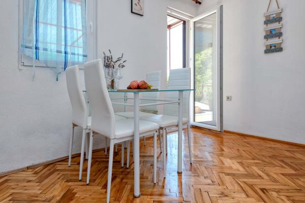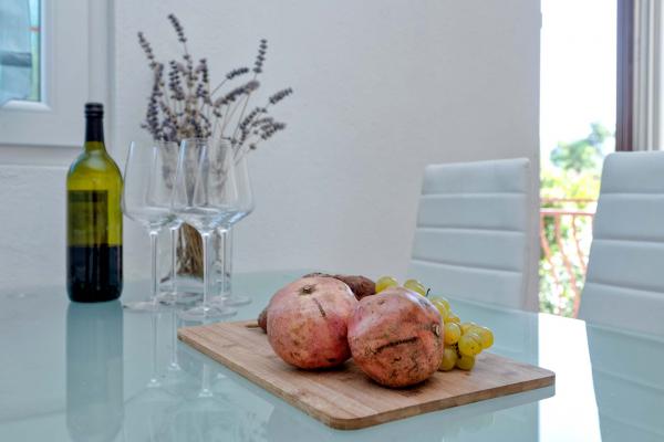 Apartament znajduje się w lesie sosnowym. To jest 5 minut spacerem od malowniczej miejscowości Vrboska i 15 minut do morza. We wsi znajdują się restauracje, sklepy, poczta, muzeum i inne udogodnienia. Mieszkanie składa się z sypialni, pokój, łazienka, kuchnia, balkon i duży taras z widokiem na okolicę życia. Posiada miejsce parkingowe.
