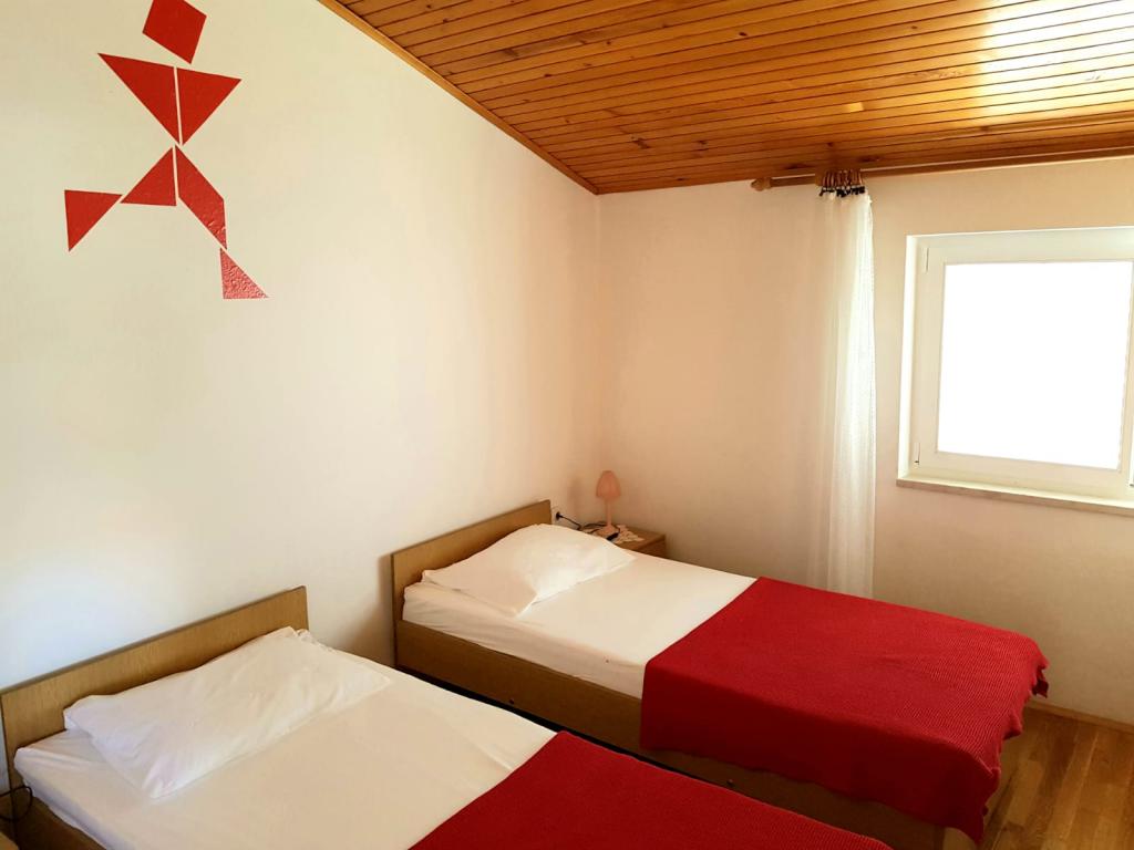 bardzo godne pochwały, bardzo ładne, prawie nowe mieszkanie, przestronne, dla 8 osób, dużą kuchnią i pokojem dziennym, wszystkie pokoje wyposażone we wszystkie niezbędne urządzenia (kuchnia: dość sztućce, ręczniki, kuchenka mikrofalowa, przyzwoity lodówka, klimatyzacja. Sypialnie: wystarczająco duże szafy, wygodne łóżka, wentylator do chłodzenia. Łazienka: pralka, suszarka do włosów. Mieszkanie posiada duży taras, ładne położenie w środku wsi, w pobliżu dwóch głównych plaż na wyspie. Właściciele są bardzo przyjazny i naprawdę stara się goście cieszyć się z ich dopustovanju. Świetna komunikacja, w dniu przyjazdu powitanie czekał na nas w dniu wyjazdu otrzymaliśmy dar. Pomimo faktu, że mamy apartament rodzinny 4-członek jest w zasadzie aż do 8 osób, byliśmy zadowoleni z mieszkania i umieścił cena naliczana za osobę. Wyspa Vrgada bardzo ładne przytulne, ciche, ma mały sklep spożywczy z potrzebami i około 4 barów (napoje, pizza) oraz 2 restauracje. Byliśmy zachwyceni mieszkańcy naprawdę działające jako jedna społeczność, która stara się, aby turyści zadowolony. Nie jeden złe doświadczenia na przykład. w restauracji lub sklepie, bardzo przyjazny. Oczywiście nie należy zapominać, ich czerwone plaże piaszczyste, piękne rano i wieczorem. Zdecydowanie polecam wszystkim, którzy szukają spokojnego wypoczynku.