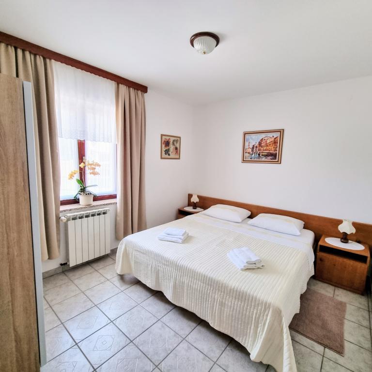 Apartamenty znajdują się w rodzinnym domu 400 m od morza i 10 minut spacerem od centrum miasta. Apartamenty zlokalizowane są w spokojnej części miasta i pozwalają swoim gościom zrelaksować się w zalesionym ogrodzie z altaną. Parking jest prywatny. Ceny wszystkich apartamentów podlegają negocjacji i są orientacyjne w zależności od okresu i ilości osób.