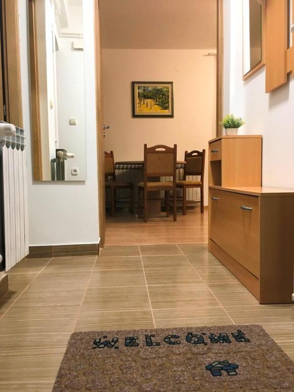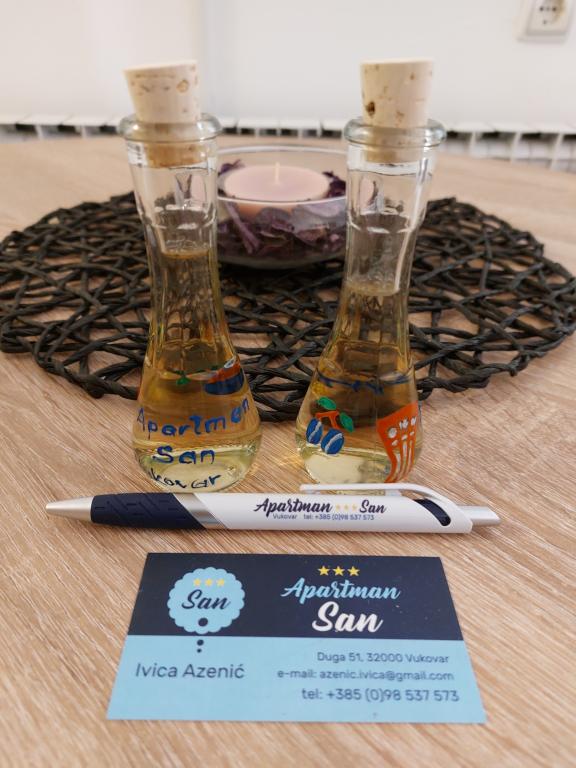 Jeśli chcesz odwiedzić Vukovar z rodziną, partnerami biznesowymi lub przyjaciółmi, jesteśmy gotowi Cię ugościć. Apartament SAN to samodzielna jednostka mieszkalna na parterze domu rodzinnego z osobnym wejściem, w której znajduje się również mieszkanie właściciela. Mieszkanie znajduje się 800 metrów od centrum Vukovaru, a pierwszy sklep i piekarnia znajdują się zaledwie 150 metrów od obiektu. Mieszkanie składa się z przedpokoju, dwóch oddzielnych sypialni, jednej dwuosobowej z możliwością połączenia z dużym łóżkiem małżeńskim oraz jednego pokoju jednoosobowego, wyposażonego we całą pościel. Każdy pokój posiada własną szafę, szafki nocne, lampki stołowe oraz biurko i krzesło. Pokój dzienny, w którym znajduje się rozkładana sofa z możliwością spania dla maksymalnie dwóch osób, telewizor (satelita), radio, klimatyzacja oraz bezpłatny dostęp do Internetu Wi-Fi. Do dyspozycji gości jest także jadalnia, kuchnia wyposażona we wszystkie naczynia i sprzęt kuchenny (lodówka, piekarnik, płyta grzewcza, kuchenka mikrofalowa, czajnik, okap).