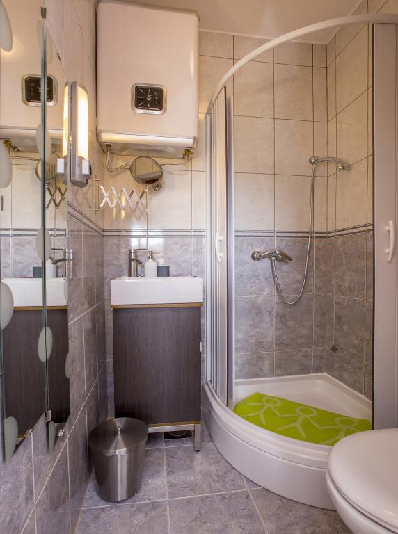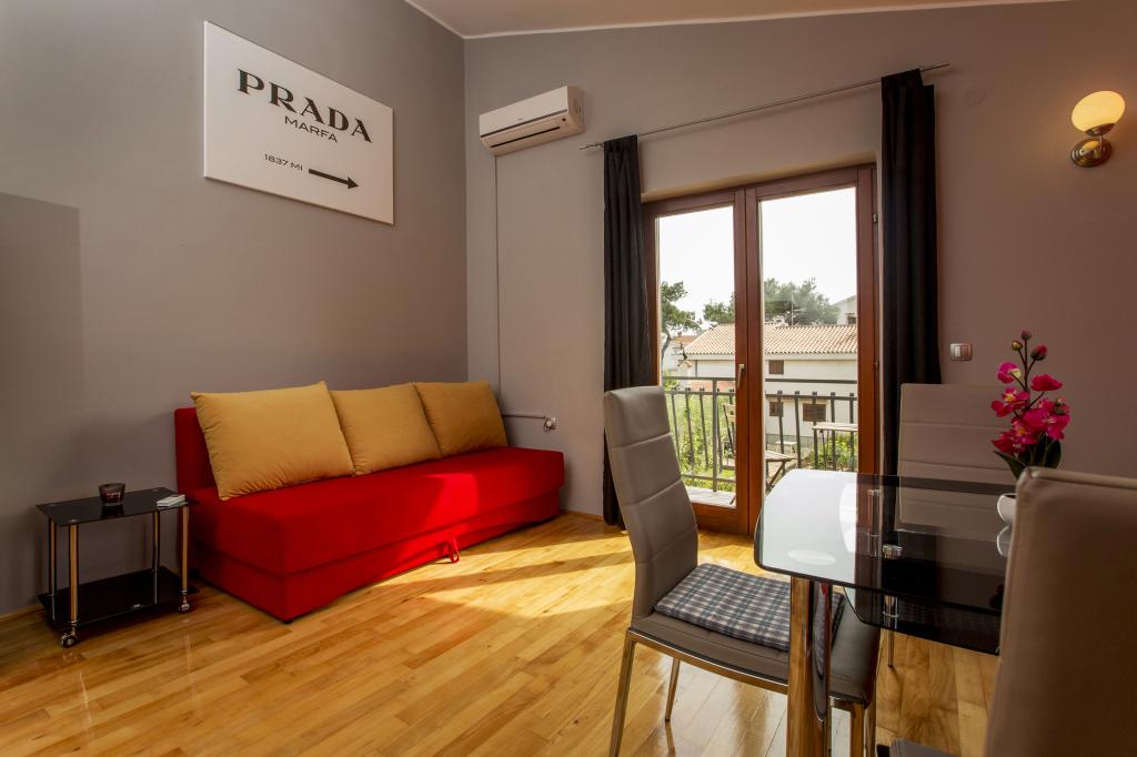 W pełni i nowocześnie wyposażone apartamenty 80 m od morza. Apartament A1 (78 m2) składa się z dwóch sypialni, kuchni, łazienki oraz dużego salonu z jadalnią i dodatkowym łóżkiem. Pokój jest klimatyzowany i może pomieścić maksymalnie 6 osób. Goście mają dostęp do telewizji satelitarnej, bezprzewodowego Internetu, ekspresu do kawy, kuchenki mikrofalowej, tostera i sejfu. Apartament A2 (41 m2) składa się z jednej sypialni oraz przestrzeni z kuchnią, stołem jadalnym i dodatkowym łóżkiem. Apartament jest klimatyzowany i może pomieścić maksymalnie 4 osoby. Posiada dwa balkony, a Goście mają do dyspozycji telewizję satelitarną, internet WiFi, ekspres do kawy, kuchenkę mikrofalową, toster i sejf. Studio A3 przeznaczone jest dla maksymalnie 2 osób, posiada balkon, jest klimatyzowane, a goście mają do dyspozycji telewizję satelitarną, internet WiFi, ekspres do kawy, kuchenkę mikrofalową, toster i sejf. Istnieje również możliwość wynajęcia całego domu, w którym może zamieszkać nawet 12 osób.