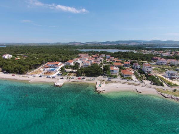 Nasze nowoczesne apartamenty zlokalizowane są w spokojnej części Zablaće, z dala od centrum ok. Sibenika. 5km. Od morza do kamienistej plaży i sosnowego cienia jesteś tylko 50m od hotelu.