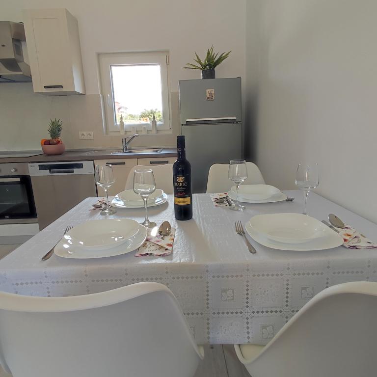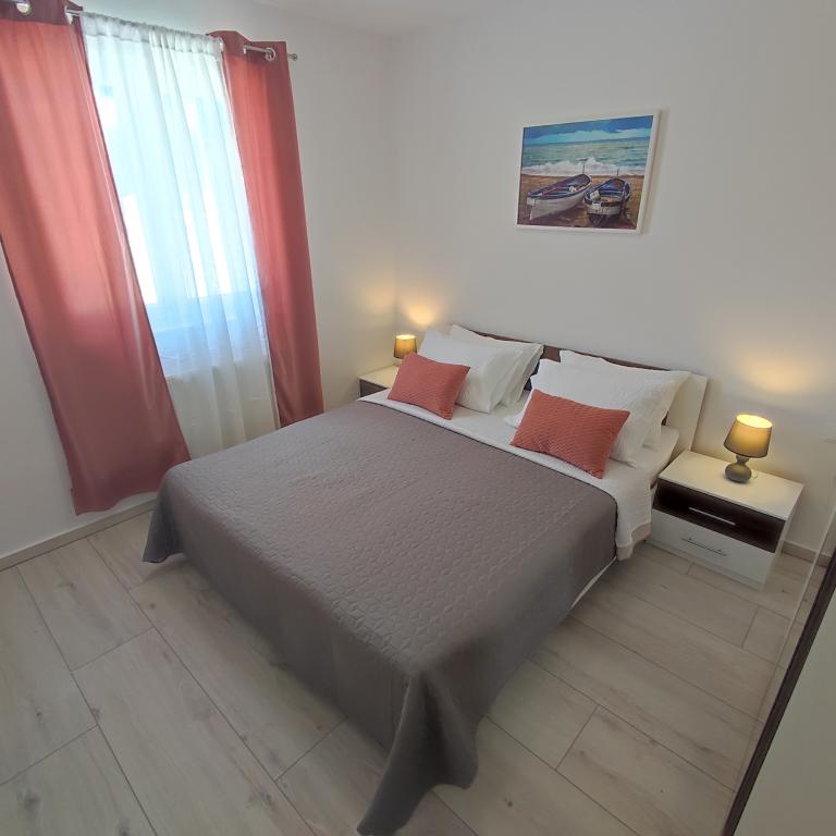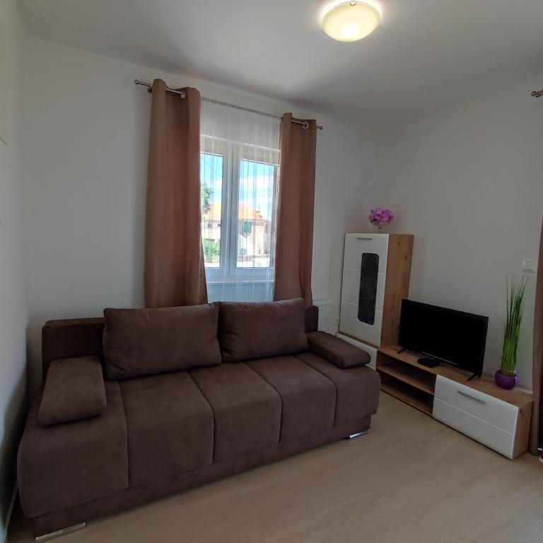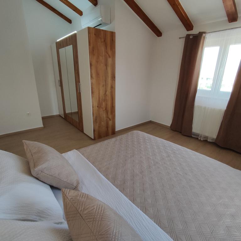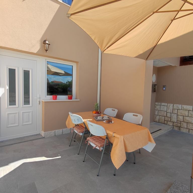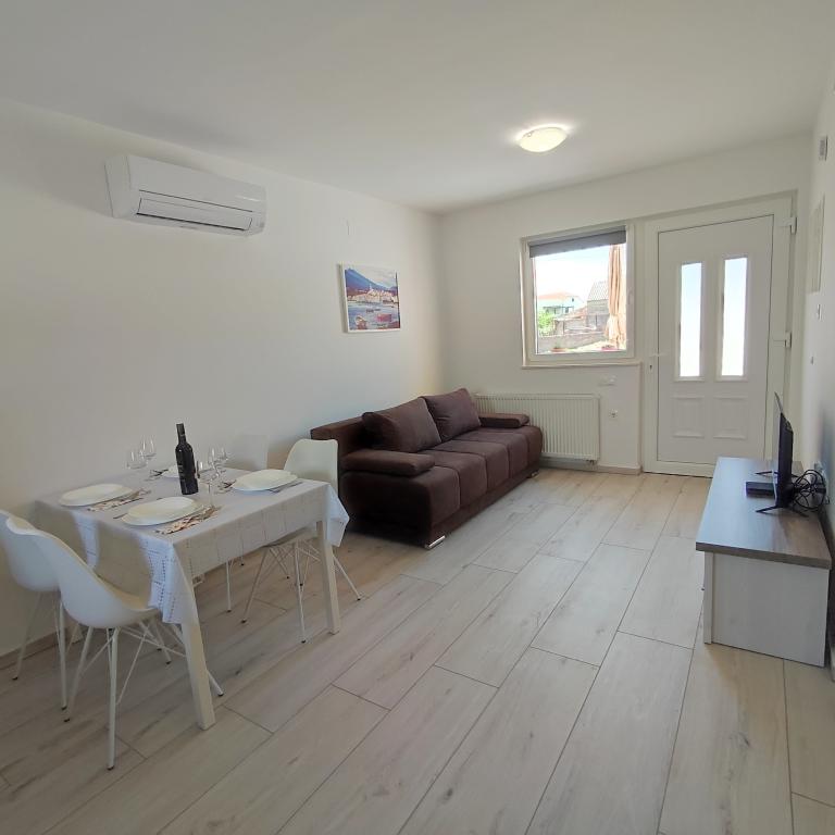 Doskonałe zakwaterowanie, nienagannie schludne, urządzone i umeblowane mieszkanie na relaksujące wakacje. Przestronny taras do przyjemnych spotkań towarzyskich, osobne wejście do mieszkania i jest naprawdę cicho... Byliśmy w wielu różnych apartamentach, ale ten jest najlepszy! Gospodyni Marina jest bardzo miła, miła i dyskretna, jesteśmy wdzięczni za drobne oznaki uwagi podczas naszego pobytu. W cieniu dużego drzewa koštela znajduje się miejsce parkingowe. W zasadzie idealny do pływania, do miasta, sklepów, restauracji. Możliwość powrotu!