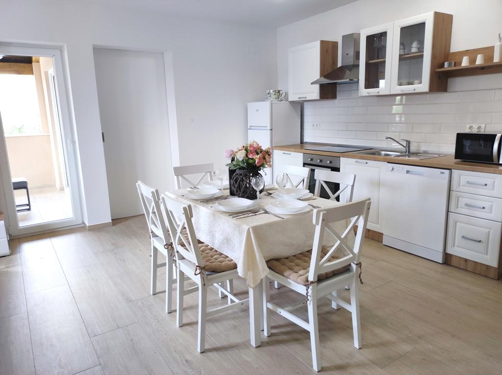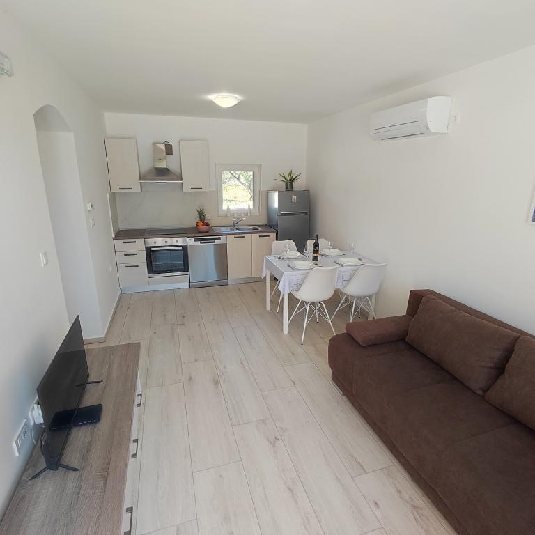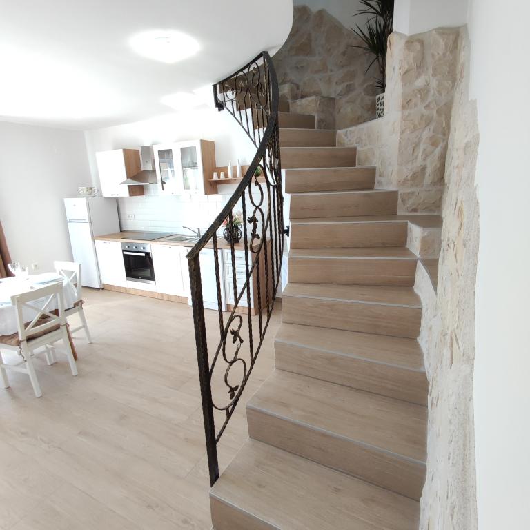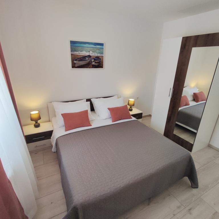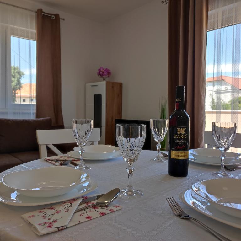 Doskonałe zakwaterowanie, nienagannie schludne, urządzone i umeblowane mieszkanie na relaksujące wakacje. Przestronny taras do przyjemnych spotkań towarzyskich, osobne wejście do mieszkania i jest naprawdę cicho... Byliśmy w wielu różnych apartamentach, ale ten jest najlepszy! Gospodyni Marina jest bardzo miła, miła i dyskretna, jesteśmy wdzięczni za drobne oznaki uwagi podczas naszego pobytu. W cieniu dużego drzewa koštela znajduje się miejsce parkingowe. W zasadzie idealny do pływania, do miasta, sklepów, restauracji. Możliwość powrotu!