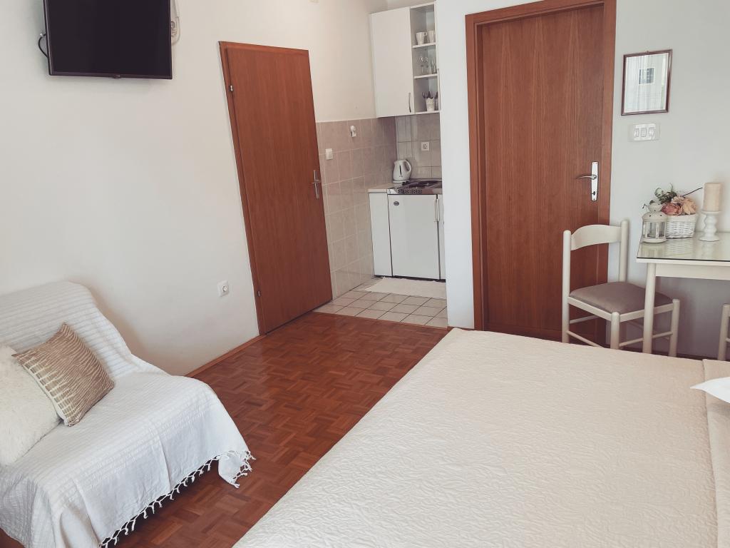 Opłata jest wliczone w cenę.opłata klimatyczna jest wliczona w cenę, bezpłatny parking, Wi-fi bezpłatnie, korzystanie z klimatyzacji jest płatne (pięć e za dobę), zwierzęta są akceptowane wyłącznie i tylko w apartamentach nr 1, nr 2 i nr 3 oraz za dopłatą, możliwość wynajmu połączeń dla łodzi, możliwość wynajęcia łodzi z przewodnikiem na zwiedzanie okolicznych wysp, możliwość korzystania z grilla, możliwość przygotowywanie różnych dalmatyńskich specjałów… W promieniu 300 metrów od apartamentu znajduje się sklep, piekarnia, bary plażowe, restauracje, pizzeria, kawiarnie, plac zabaw dla dzieci, boisko sportowe…