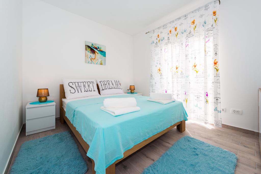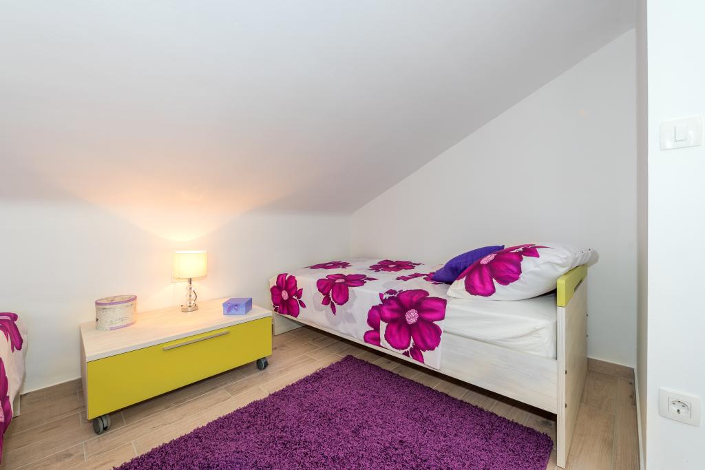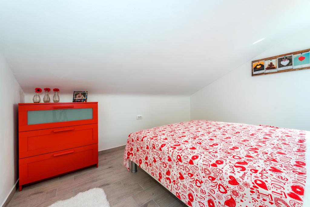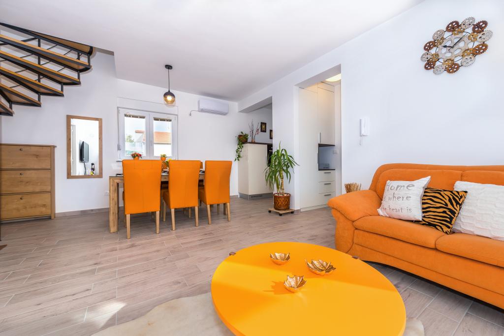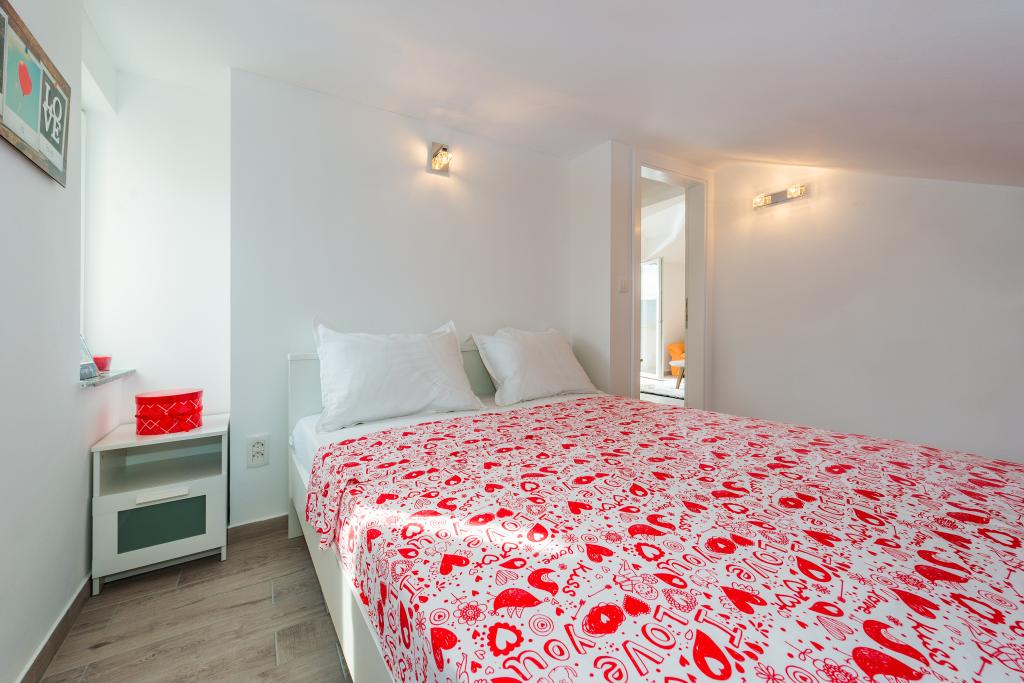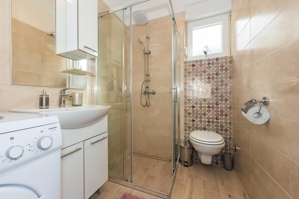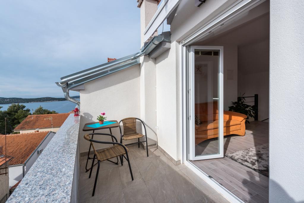 Apartament Marita znajduje się w spokojnej okolicy Žaborić zwanej Crveni brig, jest to około kilka minut od morza. Mieści się w niewielkim budynku na pierwszym piętrze. W mieszkaniu znajdują się dwa bezpłatne garaże. Powierzchnia mieszkania to około 100 m2, rozłożona na dwóch piętrach połączonych wewnętrznymi schodami.Na pierwszym piętrze znajduje się nowoczesna kuchnia ze wszystkimi sprzętami AGD, łazienka, pokój dzienny, balkon oraz sypialnia z łóżkiem małżeńskim . Na piętrze znajdują się dwa pokoje, jeden z dwoma pojedynczymi łóżkami i drugi z łóżkiem małżeńskim, łazienka, pokój dzienny i balkon z widokiem na morze. W apartamencie znajduje się zmywarka i pralka oraz dwa klimatyzatory. Jeden z garaży połączony jest z wewnętrzną klatką schodową i wejściem do budynku. W pobliżu znajdują się dwie restauracje, wypożyczalnia łódek i skuterów wodnych, park rozrywki na wodzie. W pobliżu znajduje się także Park Narodowy Krka, oddalony o około 20 km autostradą.